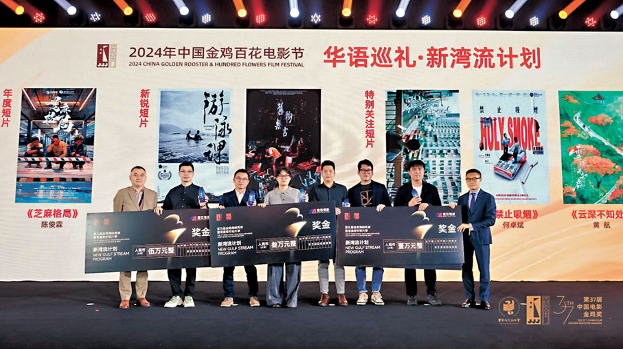 香港文匯報訊 11月15日,第五屆金雞海峽兩岸暨港澳青年短片季「新灣流計劃」在廈門落下帷幕。 本屆新灣流短片季迎來由張鈞甯、劉循子墨、郭子健、張家魯、黃曉明組成的導師評審團。 經歷徵集、初評、複審等多個階段的選拔與歷練,上百部來自大灣區新導演的短片中,最終有6部佳作獲得了「新灣流計劃」的短片大獎。 年度短片獎將為一位獲獎導演提供5萬元(人民幣,下同)扶持資金,新銳短片獎將為兩位獲獎導演各提供3萬元扶持資金,特別關注短片獎將為三位獲獎導演各提供1萬元獎勵。