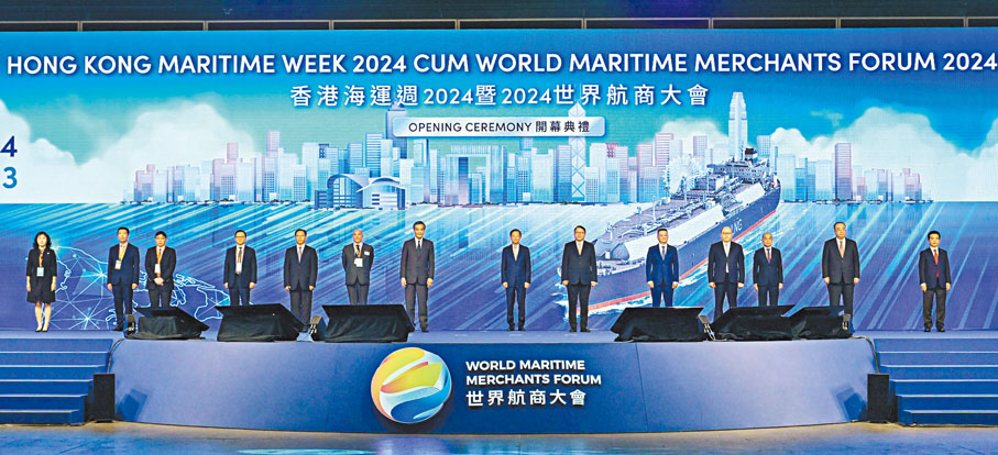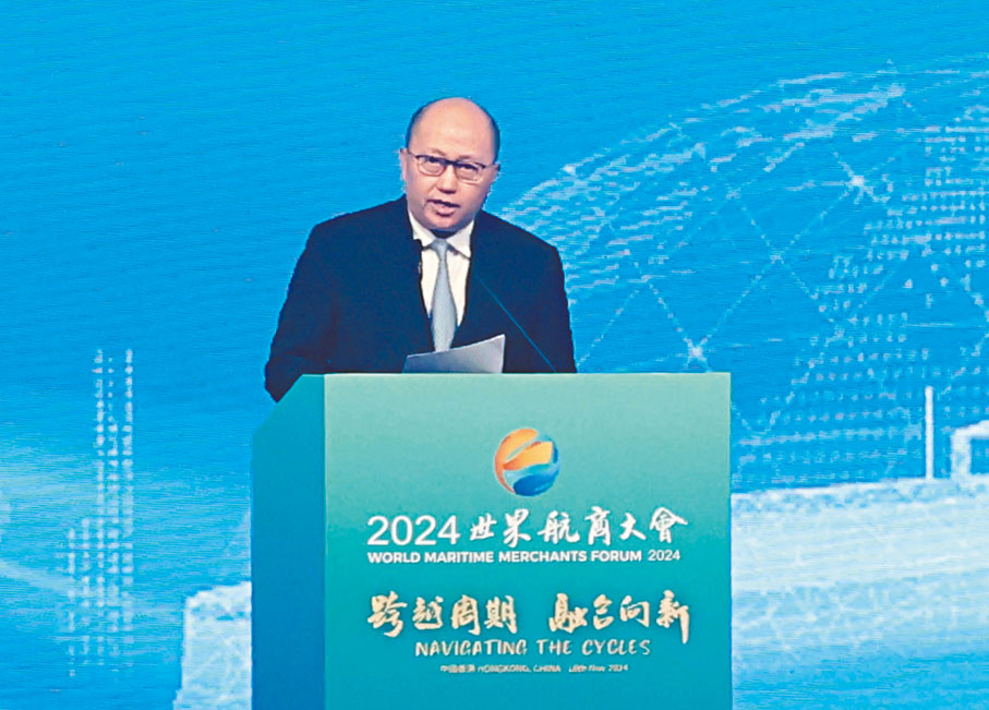 第四屆世界航商大會昨日在港舉行,本屆大會以「跨越周期 融合向新」為主題,聚焦航運業最新政策、熱點及趨勢,探討全球經貿和運輸大變局下航運產業面臨的新機遇和新挑戰。中央政府駐港聯絡辦主任鄭雁雄在論壇上致辭時,對香港航運業提出「三個把握」,呼籲業界把握歷史大勢及科技趨勢,把握「一國兩制」優勢 ,持續加大在港業務布局,推動香港高端航運服務業發展,投身綠色航運中心建設,在推動香港由治及興中實現自身更大發展。 ●文:香港文匯報記者 蔡競文 圖:香港文匯報記者 郭木又