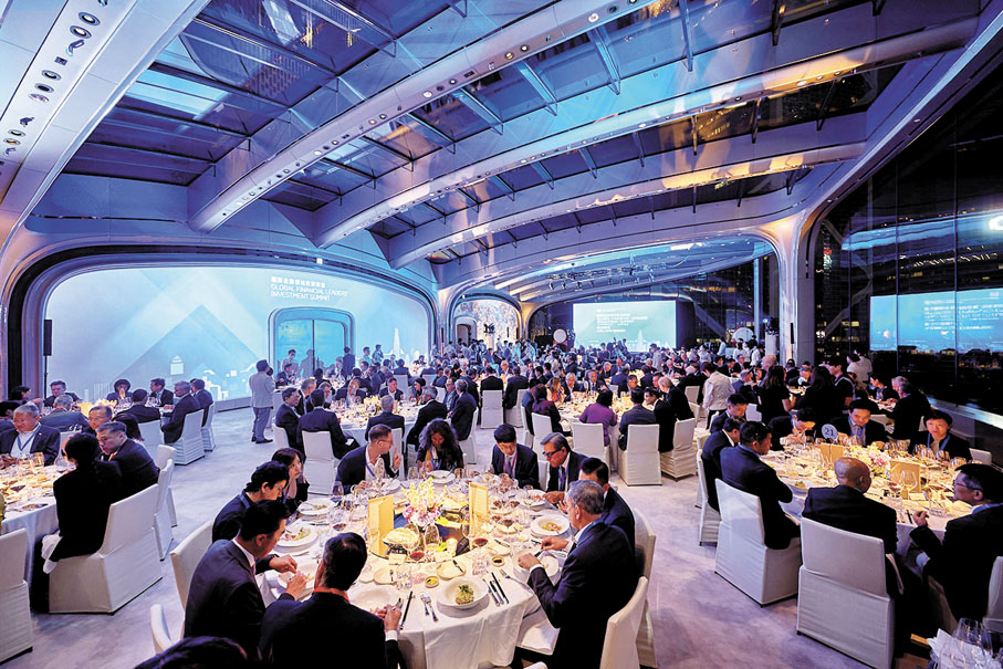 峰會昨晚(18日)於恒地中環新建成的甲級商廈The Henderson 39樓頂層舉行歡迎酒會及晚宴,現場有約250位與會嘉賓出席,猛人雲集、星光熠熠。