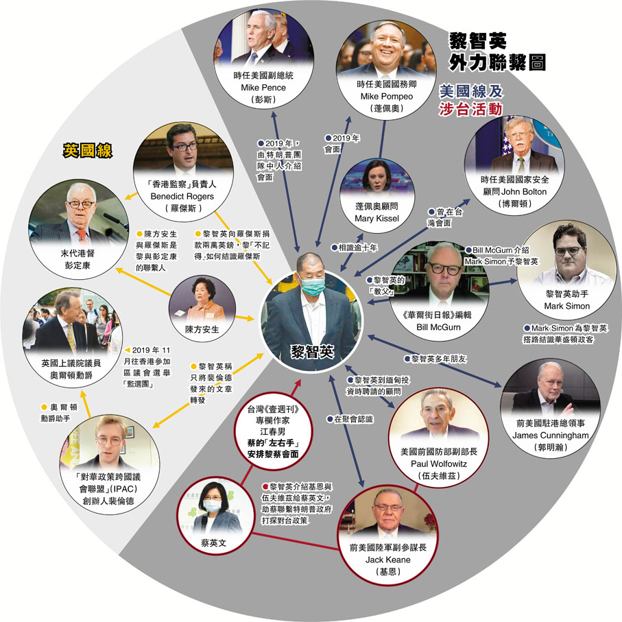 控方展示被告「外力聯繫圖」 揭露「英國線美國線」人物關係