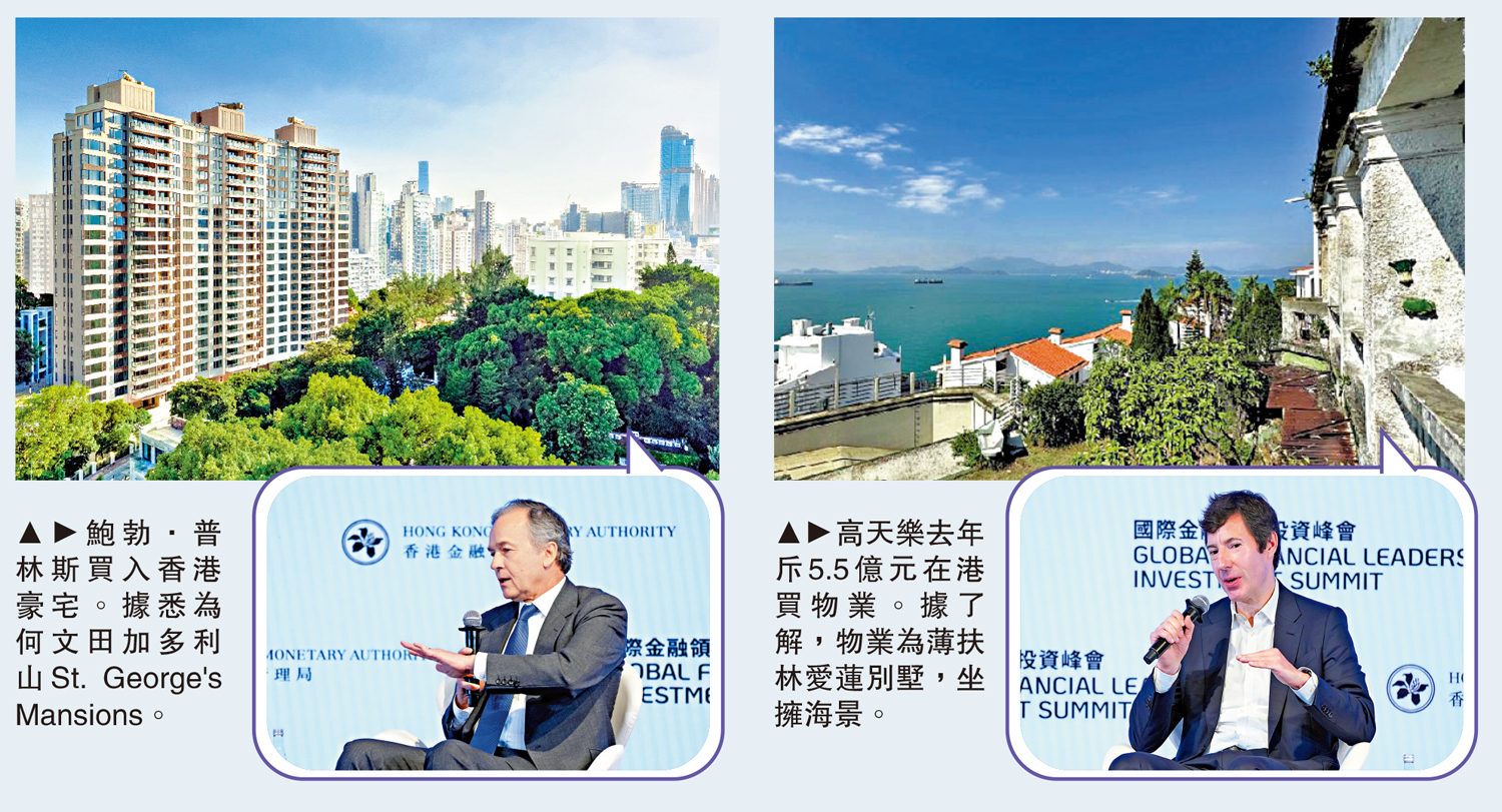 昨日為國際金融領袖投資峰會第三天,並進行「與國際投資者對話」研討會。與會嘉賓除了熱烈討論外,外資大行高管先後在香港置業更成為熱話。橋水投資公司聯席首席投資官鮑勃·普林斯(Bob Prince)買入何文田加多利山豪宅,稱「太太喜歡香港」,同時看好香港地理位置,「有很好的機場,豐富的文化和美食,是一個有趣的城市」。同場在港生活逾20年的太盟投資集團聯合創辦人兼首席執行官高天樂(Chris Gradel),去年斥資5.5億元在港購置戰前大宅。