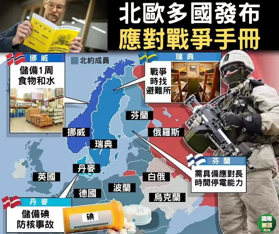 瑞典、挪威和芬蘭等北歐國家近日分別向民眾發布應對戰爭和突發危機的新指南手冊,引發廣泛關注。