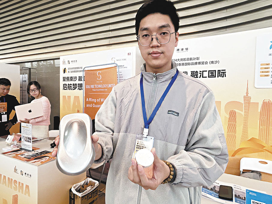 香港文匯報訊(記者 敖敏輝 廣州報道)為助力香港企業和品牌開拓大灣區市場,22日至23日,「大灣區啟航計劃·第二屆香港國際品牌博覽會」在廣州南沙越秀國際金融中心舉行,吸引了30餘家香港企業參加,涉及創新科技、專業服務和食品零售等香港優勢產品和服務。其中,創新科技亮點紛呈,新技術、新應用令人耳目一新。有企業瞄準粵港澳合辦全運會帶動全民體育發展的機遇,利用元宇宙技術推出XR數智體育項目,為年輕人群體帶來娛樂化、個性化的的競技體育玩法。亦有團隊因應內地「雙碳」目標及造車新勢力的崛起,研製無電製冷車漆,目前已獲得頭部新能源車企認可。