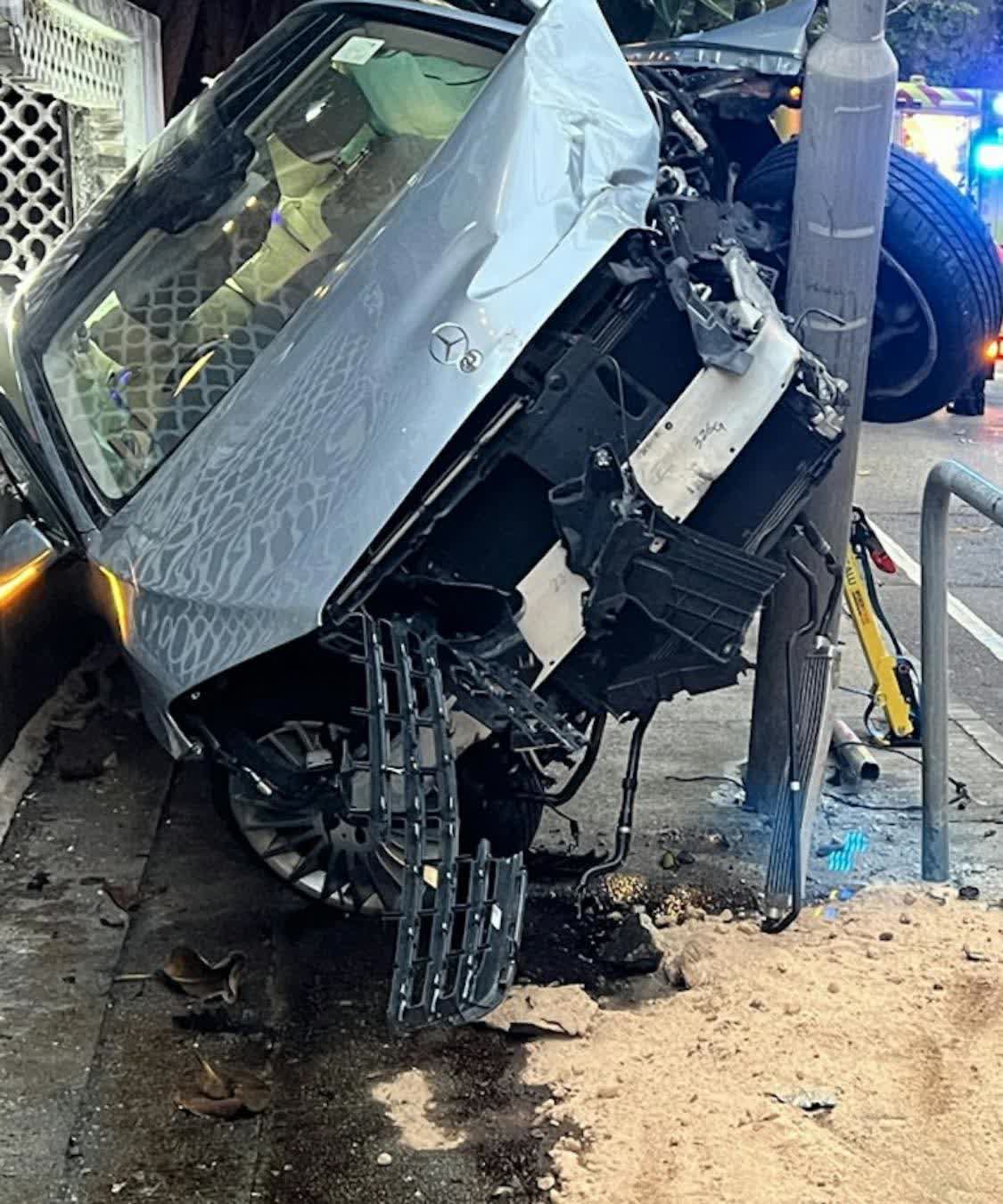 香港文匯報訊 今日(25日)清晨6時左右,一輛平治私家車駛至域多利道550號近碧瑤灣對開時,失控撞向一幅圍牆,再掃低一支燈柱。事後,汽車半空傾側懸掛在燈柱上,90歲男司機清醒被困車內。