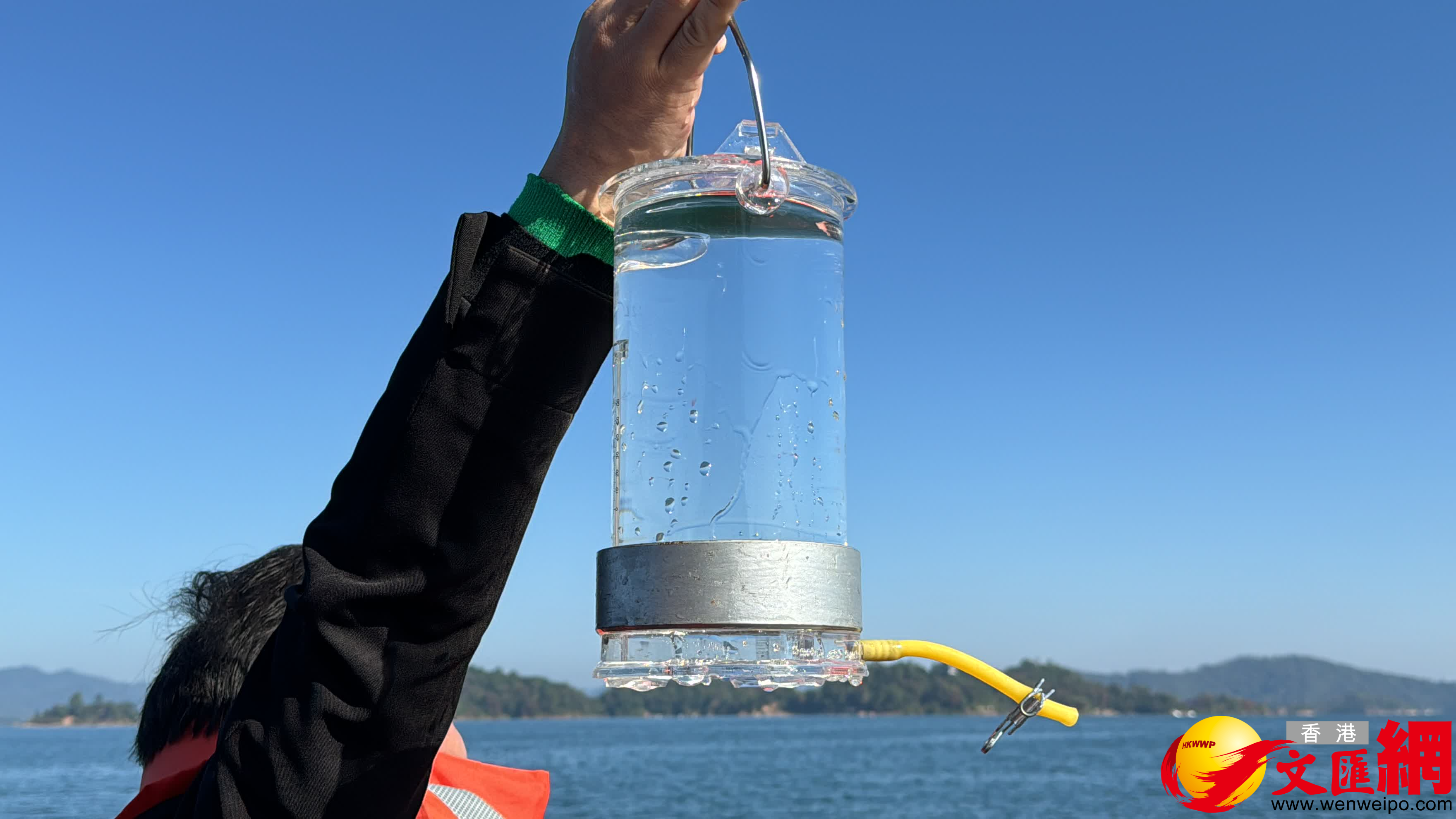 船隻駛入湖中後停下,周捷航拿出專業的取水器,拋入水中約25米深左右的位置,取出滿滿一壺剔透潔凈的萬綠湖水,在陽光照射下粼粼泛着光。隨後,周捷航在海外華媒們的鏡頭下對剛取出的湖水進行了TDS(水中總溶解性物質濃度)水質檢測和PH值檢測,顯示其TDS值為36(國家飲用水標準為50以下),PH值在7.3左右,為天然的弱鹼性水體。菲律賓商報財經編輯陳埏衛首先品嘗了這一壺現取的萬綠湖水,表示口感十分新鮮清甜:「可以看到它的生態保護工作也做得特別好,景觀非常漂亮,不愧是粵港人民的飲用水生命之源。」