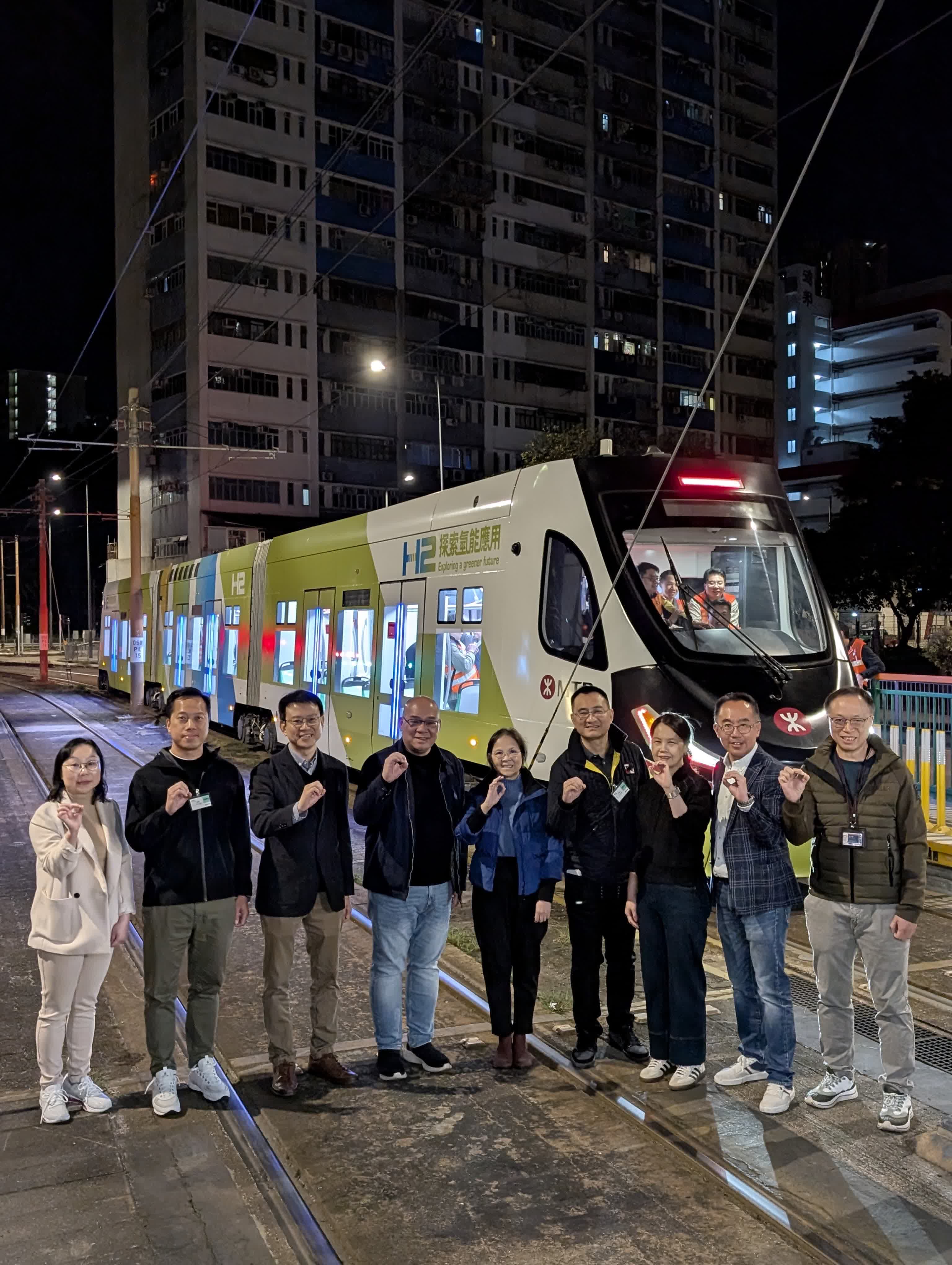 會後,工作小組主席環境及生態局副局長黃淑嫻與工作小組成員在今晨(12月1日)參觀港鐵正在進行的氫能源有軌電車研究試驗項目。該項目涉及氫能源列車在晚上非服務時間以非載客形式行駛部分屯門輕鐵路段,以收集數據評估氫能作為港鐵網絡潔淨能源選擇的技術可行性。