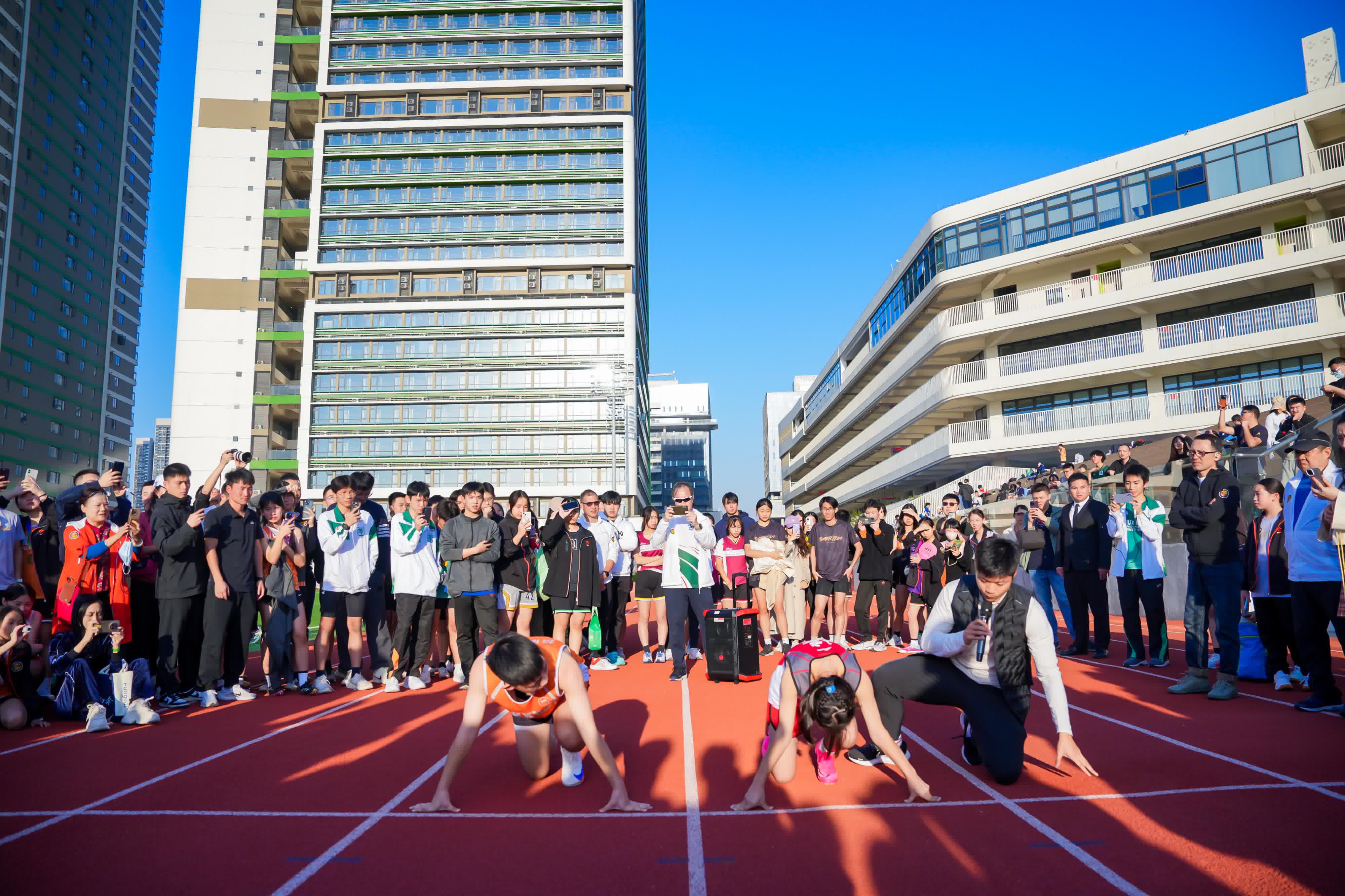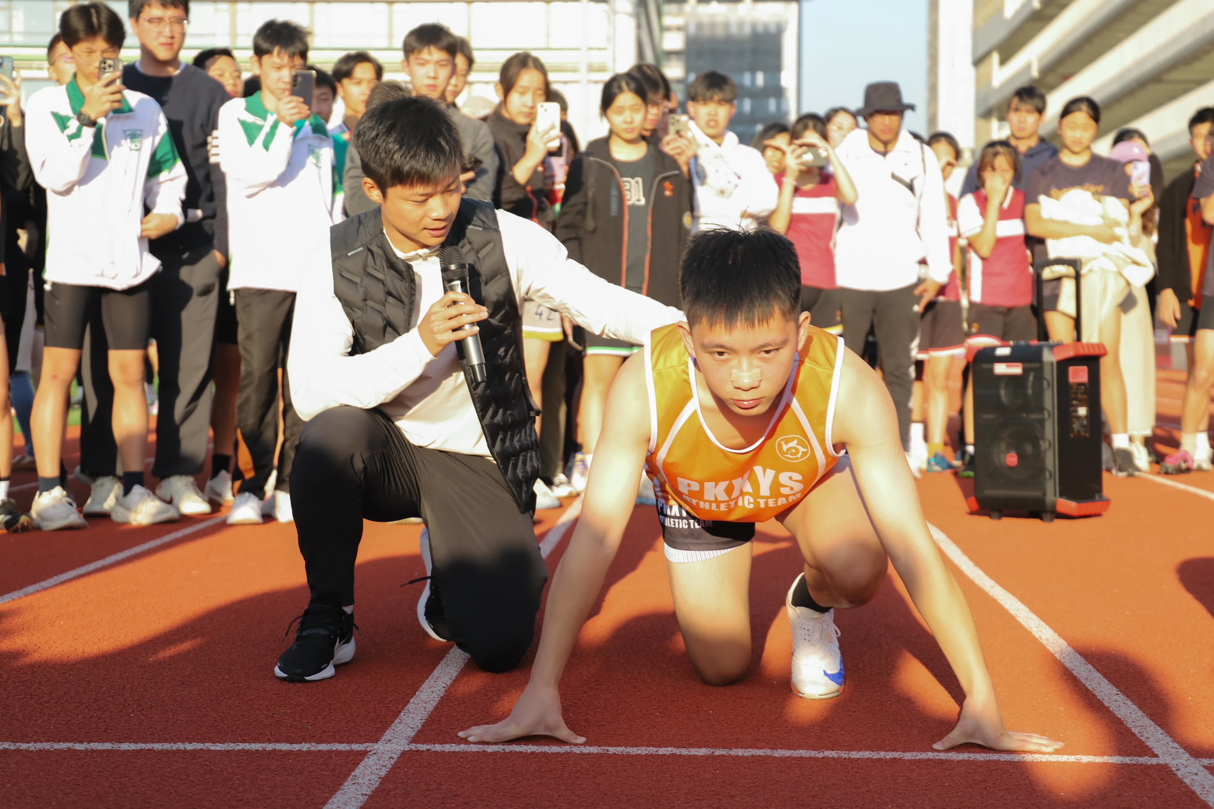 比賽現場氣氛熱烈,蘇炳添為運動員們分享起跑技術的要點,親自示範,並和運動員一起跑步。蘇炳添和謝思埸還在田徑場上為100米的比賽鳴槍。同學們對於兩位國家級運動員的到訪皆激動萬分,反應踴躍,把握與偶像接觸的機會。