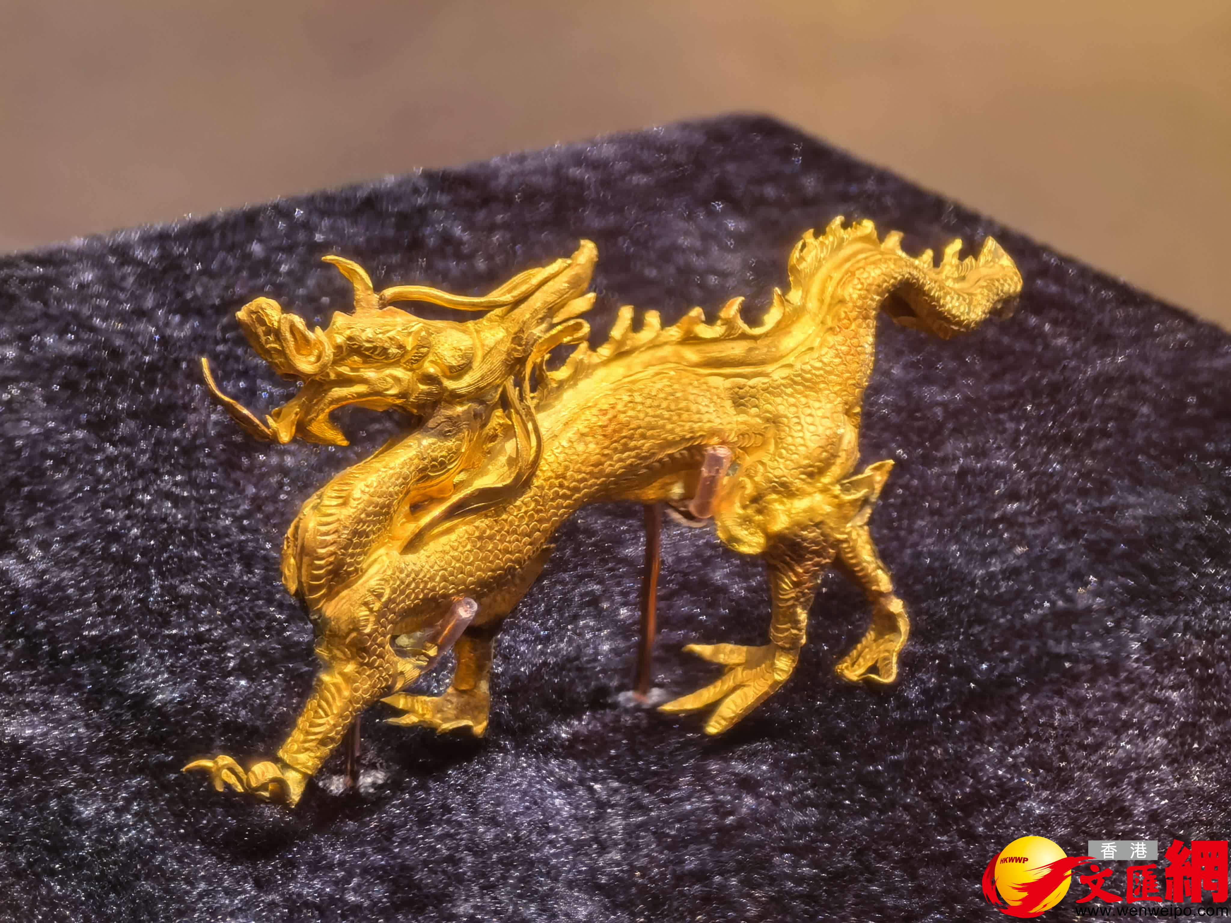 走進展覽,就可以看到一條投於杭州西湖之中的投龍遺物,一條沉睡千年的「北宋金龍」,曲頸昂首,張口吐舌,龍鬚飛揚,龍尾上翹,通體麟紋,呈現出一種威嚴而矯健的姿態。展覽中的還有30多條不同形態的投龍,有金、銀、銅、鎏金等不同材質,體現了古代中國對投龍儀式的重視。
