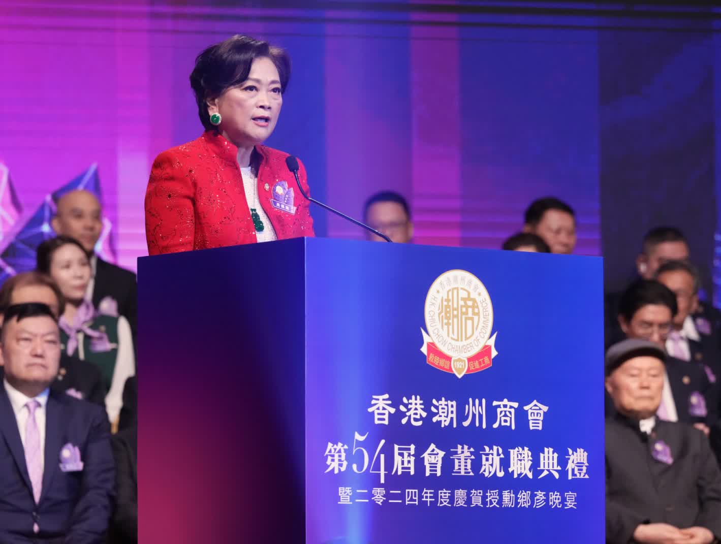 (大公報記者 龔學鳴)香港潮州商會第54屆會董就職典禮今晚(2日)在香港會議展覽中心舉行,高佩璇成為商會成立103年來的首任女會長。行政長官李家超在視頻致辭中表示,當前香港正處於經濟轉型的關鍵時刻,不論是政府或社會各界都必須積極求變,改革創新,潮州人一向是香港工商界的中堅力量,相信今後將繼續以港為家、倚港興業,以實際行動推動香港經濟和社會更蓬勃發展。