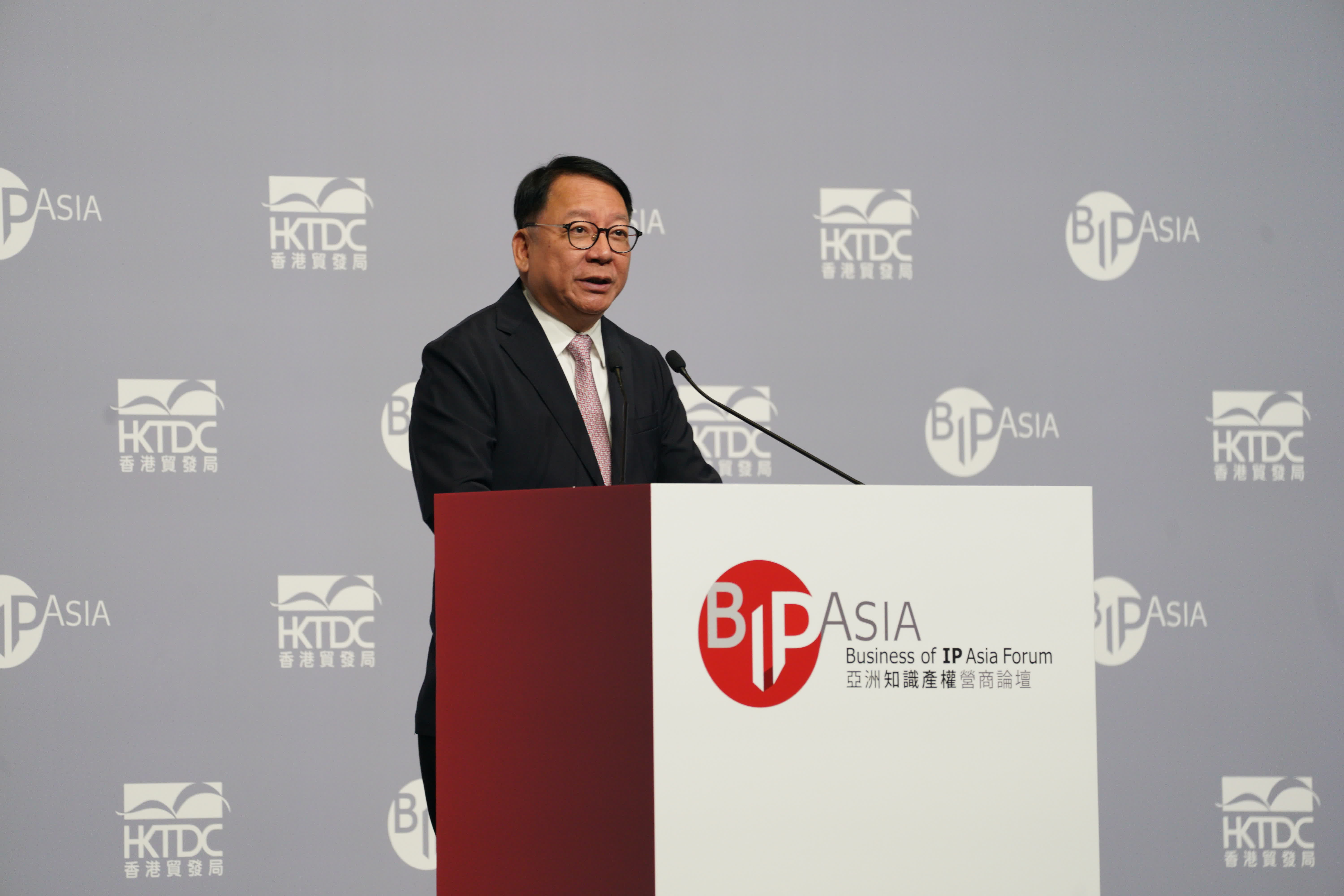 林建岳在致辭中表示,香港的影視、娛樂、音樂、時尚、藝術,無不彰顯創意,同時又匯聚了科學和創新科技。目前「深圳-香港-廣州」在2024年全球創新指數的排行榜中,連續五年排名全球第二大集群。香港作為國際商貿及投資中心,創造一個自由公平的營商環境至關重要,所以必須致力保護知識產權。
