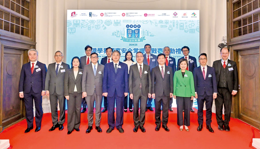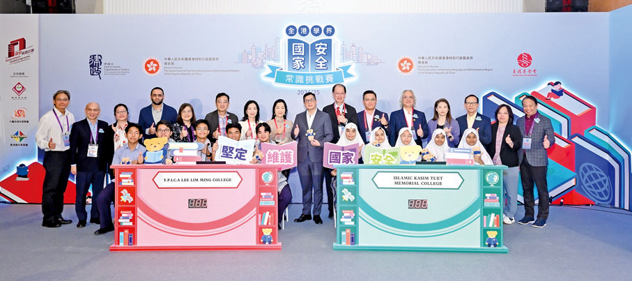 由律政司、保安局、教育局及香港善德基金會再度聯合主辦,新界校長會、九龍地域校長聯會、香港島校長聯會全力支持舉辦的「全港學界國家安全常識挑戰賽2024/25」,早前假前法國外方傳道會大樓舉行啟動禮,邀請了行政長官李家超作視頻致辭,律政司司長林定國資深大律師、中央人民政府駐香港特別行政區聯絡辦公室副主任羅永綱、中央人民政府駐香港特別行政區維護國家安全公署副署長陳楓、保安局局長鄧炳強、教育局局長蔡若蓮博士,聯同香港善德基金會主席董吳玲玲擔任主禮嘉賓,一同為賽事揭開序幕。