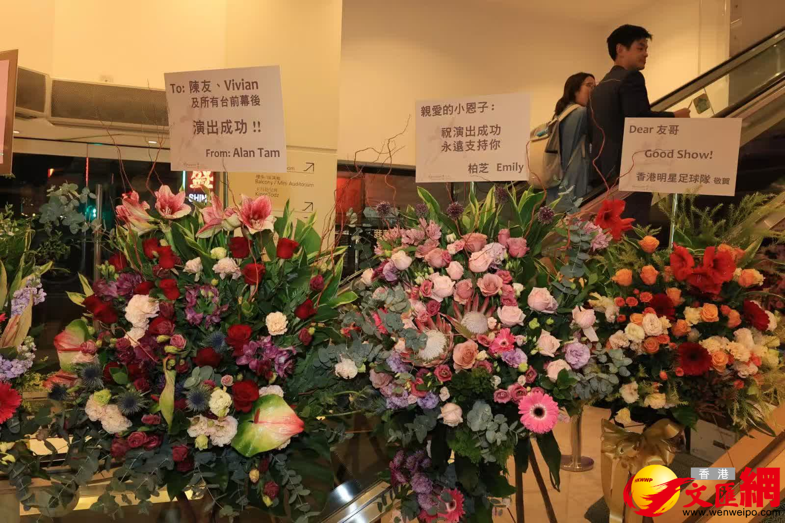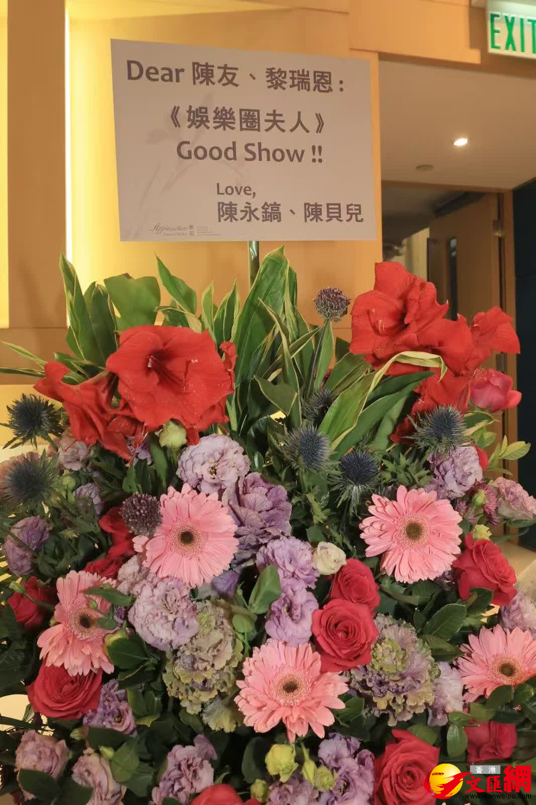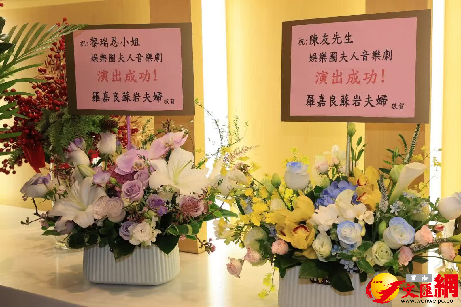 香港文匯報訊(記者 子棠)陳友和黎瑞恩首次攜手演出、杜自持擔任音樂總監的音樂劇《娛樂圈夫人》今晚正式公演,全場爆滿。不少圈中人自掏腰包買飛到場支持,計有關心妍和老公、鄺文珣、彭家麗等;而陳貝兒和父親陳永鎬,羅嘉良和太太蘇岩、江華和麥潔文夫婦等送花籃道賀。陳友、黎瑞恩聯同張武孝(大AL)及一眾演員,將透過二十多首歌曲,講述了陳友太太在疾病中獲得神蹟治癒的真實故事,並盡訴娛樂圈中人生歷程。