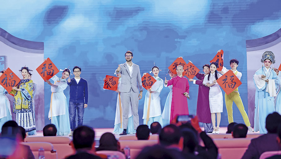 在「福潮之旅」福州文旅推介環節,不同身份的四位旅遊推薦官生動講述了福州的文化魅力與旅遊發展故事。來自德國漢堡的「漢語橋」參賽選手羅偉哲在福州走街串巷,偶遇舞蹈演員林姝敏、手工藝人海若及來榕創業的台胞郭屹凡。他們感受閩劇唱腔、非遺製作的細膩聲響,品嚐茉莉花茶、魚丸等美食,領略福州名勝古跡與人文風情,共同詮釋「福」字的深厚內涵,傳遞出福州開放包容的城市形象和作為有福之州的幸福底色。該環節通過舞台表演、大屏特效和群演互動,呈現了福州獨特的幸福(Happiness)、繁榮(Prosperity)與祈福(Blessing)魅力。