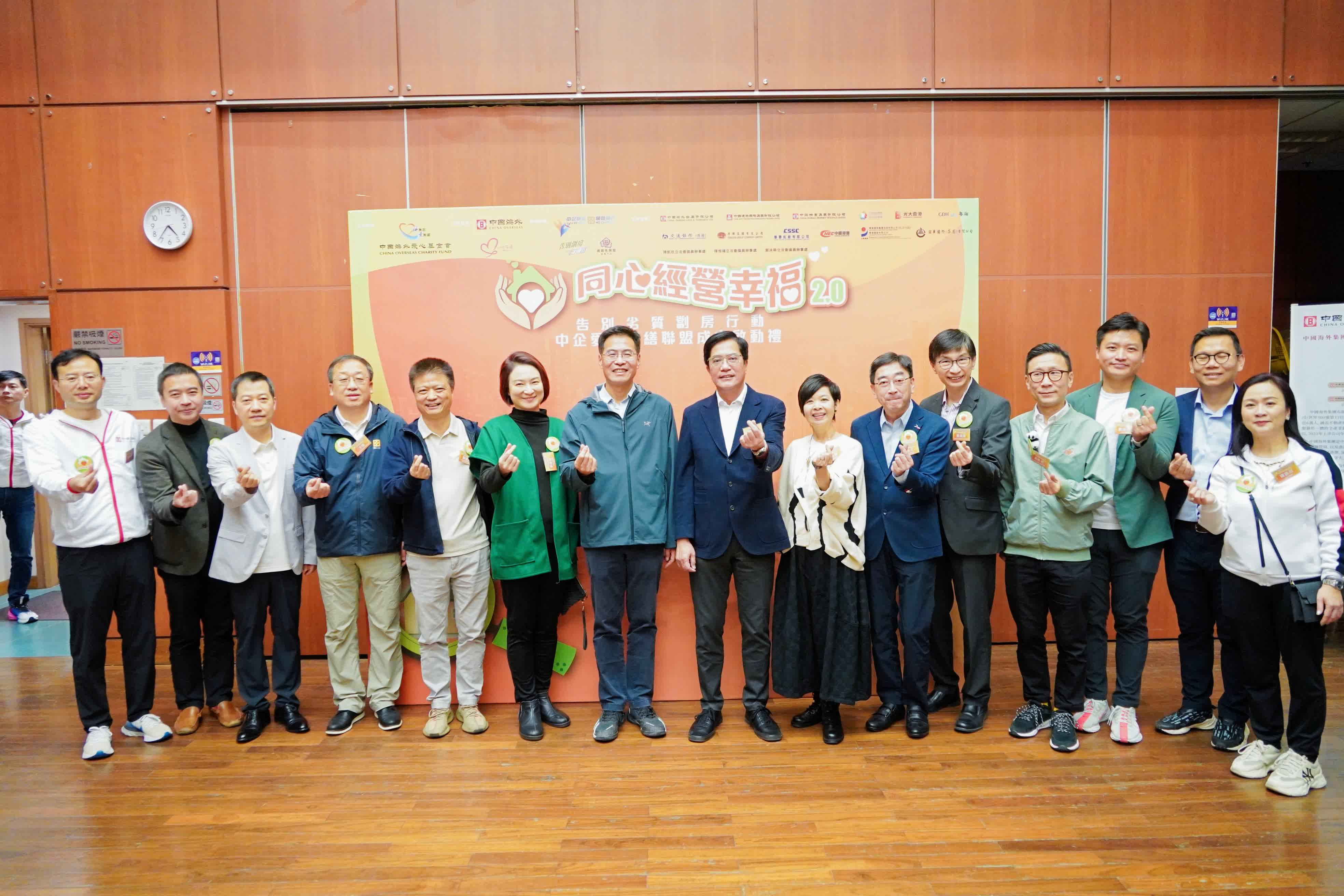 告別劣質劏房行動第一期計劃共舉辧24場睇樓團,有五成家庭參觀過渡性房屋,其中約一半家庭即場由義工協助下提交入住申請表,約四成家庭成功入住。中國海外愛心基金會主席顏建國在致辭時表示,新⼀年基金會將撥款300萬元,並投放更多義工人手,支持「同心經營幸福2.0」擴展服務區域至油尖旺、深水埗、荃灣、葵青及觀塘,目標是服務約800戶家庭;而「中企愛⼼修繕聯盟」將針對獨居長者及基層家庭開展義務家居修繕服務,包括安裝防滑扶手、檢查水管、清潔下水道、門鎖維修、修補天花及更換電燈電線等,希望以實際行動支持特區政府施政,為改善民生出力。
