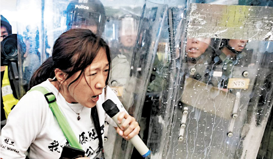 45歲被告陳虹秀,報稱註冊社工,被控於2019年8月31日在香港灣仔軒尼詩道與盧押道一帶,聯同其他身份不詳的人參與暴動。