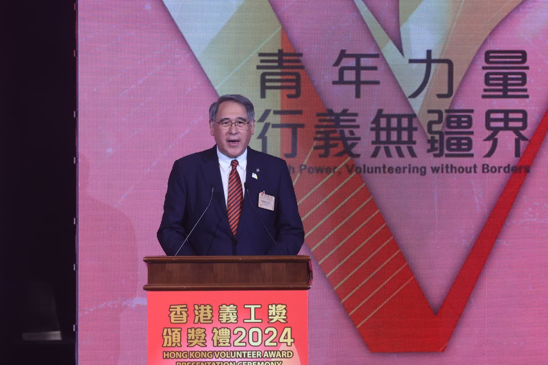 特區政府政務司副司長卓永興在頒獎禮上致辭表示,特區政府一直推動和鼓勵社會各界參與義務工作,共建關愛共融社會。他認為,參與義務工作,除了可以貢獻社會之外,同時亦可以接觸社會上不同界別的人士,擴闊個人和社交網絡,青年更可以從中學習在課堂以外的知識和技巧,擴闊視野。他呼籲義工能鼓勵身邊青年朋友一同投身義工行列,讓這股力量延續下去、薪火相傳,為社會凝聚更多正能量,培育新一代建立正向價值觀。