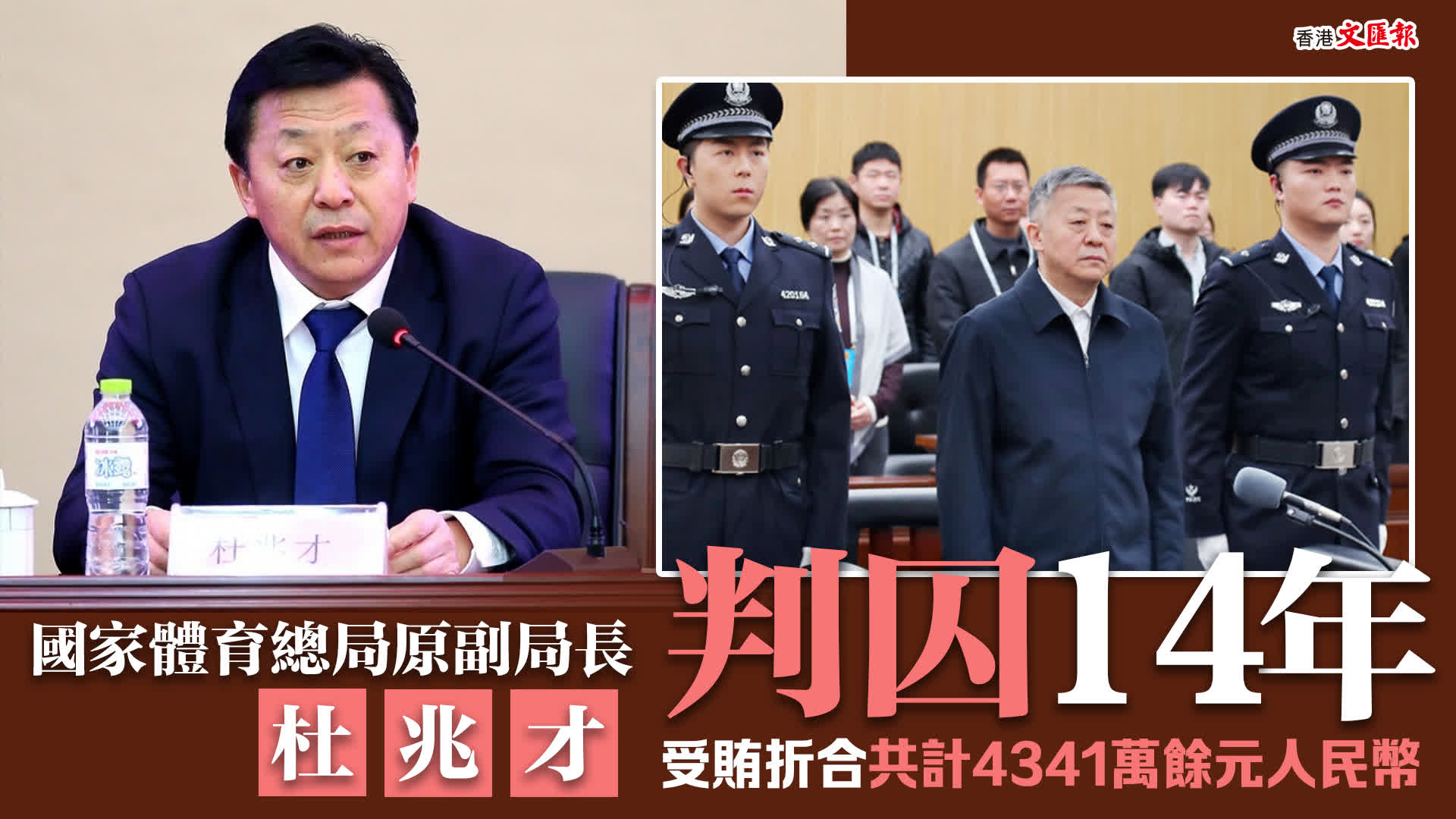 12月13日,湖北省武漢市中級人民法院對國家體育總局原黨組成員、副局長,中國足球協會原黨委書記、副主席杜兆才受賄案一審公開宣判,對被告人杜兆才以受賄罪判處有期徒刑14年,並處罰金人民幣400萬元;對其犯罪所得財物及孳息依法予以追繳,上繳國庫。