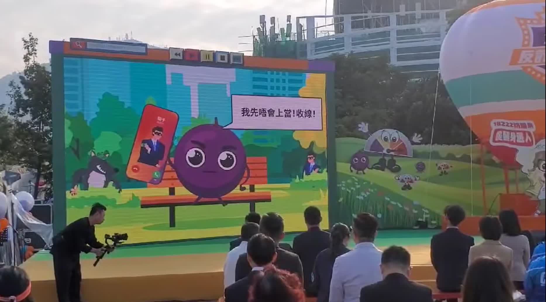 今日下午2時30分,「全城反詐嘉年華」在西九文化區藝術公園大草坪舉行啟動儀式,主禮嘉賓包括警務處副處長(行動)周一鳴、刑事及保安處處長葉雲龍、助理處長(刑事)鍾詠敏、財富情報及調查科總警司鄭麗琪、網絡安全及科技罪案調查科總警司林焯豪、商業罪案調查科總警司游健雄。