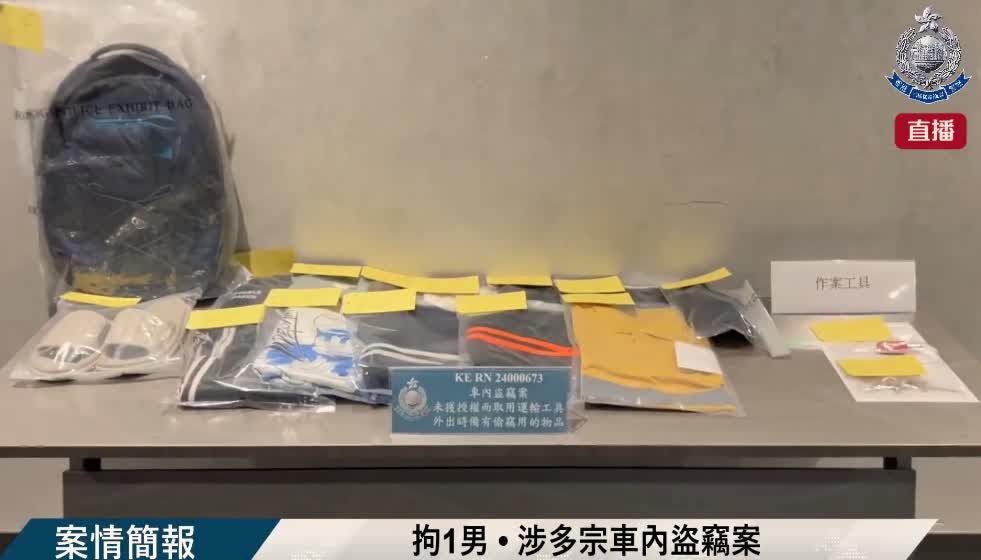 被捕男子(41歲),在他身上起獲5條百合匙及一個破窗器,他涉嫌與今年7月至12月,在港九新界多區發生的30宗同類案件有關,包括17宗車內盜竊案及13宗未獲授權而取用運輸工具的案件有關。失竊財物包括現金及電話等,合共6.6萬元。據了解被捕人有三合會背景,報稱無業。他將被落案起訴,案件明日將於觀塘裁判法院提堂。