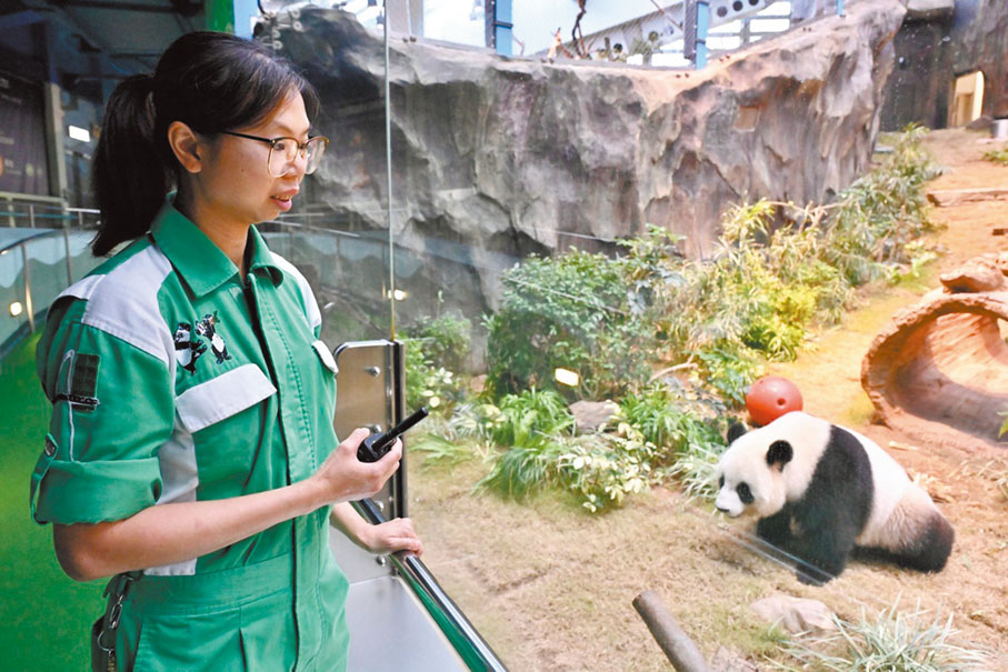 胡綺琪在海洋公園工作17年,無論是已離世的大熊貓「安安」、「佳佳」,還是「樂樂」、初為人母的「盈盈」,以至龍鳳胎,都曾得到她悉心照顧。