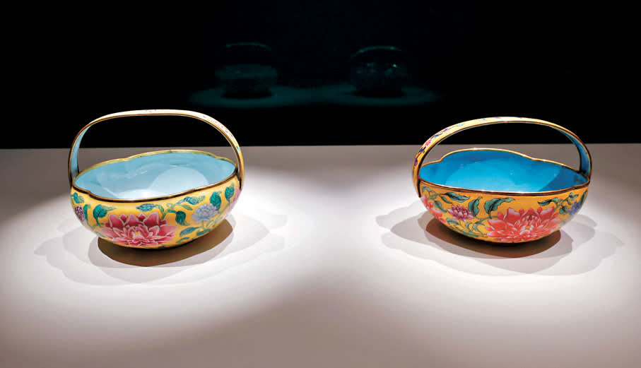 同展區內亦有反映法國工藝於中國風靡的文物。一件纏枝花卉紋盆便是依照法國的「透明法瑯」工藝製成;兩件分別產於法國和中國廣東的牡丹紋海棠式花籃,則顯示了當時中法兩國的工藝區別。法國製的顏色更為飽和,受到當時皇室的追捧。