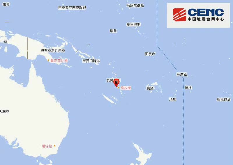 中國地震台網正式測定:12月17日9時47分在瓦努阿圖群島(南緯17.75度,東經167.95度)發生7.2級地震,震源深度30千米。