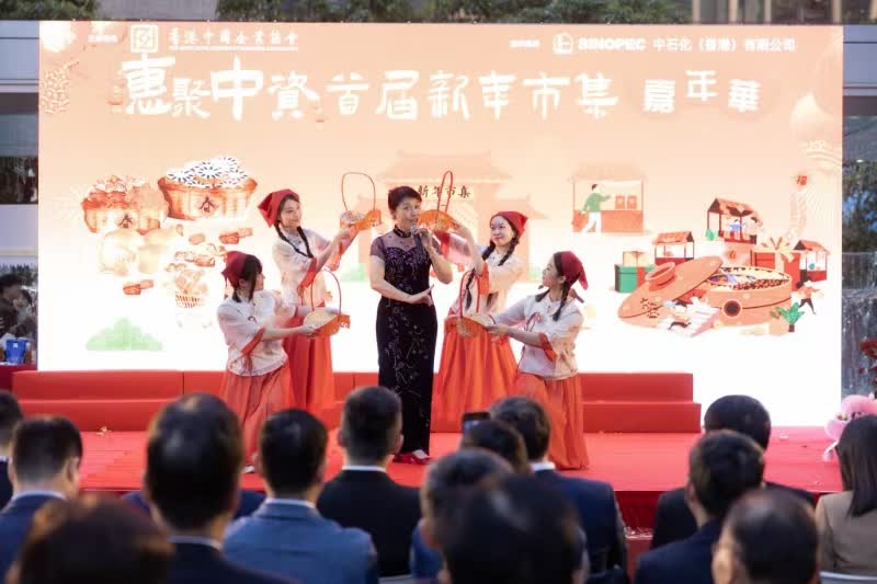 12月17日,由香港中國企業協會主辦、中石化(香港)有限公司協辦、中企協會各地方分會及會員企業大力支持的「惠聚中資」首屆新年市集嘉年華啟動禮在華潤大廈一樓東平台舉行。中企協會副會長兼總裁于曉,商務及經濟發展局副局長陳百里,中央政府駐港聯絡辦經濟部副部長呂峰,商界(第三)立法會議員嚴剛,立法會議員、交銀國際控股有限公司董事長譚岳衡,灣仔民政事務專員張雁伶,中石化(香港)有限公司總經理吳慶高,山東企業分會會長、華魯集團董事長樊軍,四川企業分會會長、中國四川國際投資有限公司董事長孫天東,天津企業分會會長、津聯集團有限公司副總經理楊利玉,湖南企業分會會長、三湘集團有限公司董事唐愷等地方分會、會員企業領導、以及區議員劉佩珊、丁江浩、胡汶軒等40餘位嘉賓出席儀式。