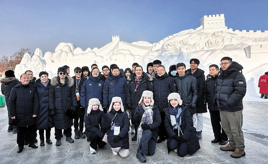 香港文匯報訊 綜合記者于海江、吳千、王欣欣及中新社報道,中共中央台辦、國務院台辦主任宋濤與中國國民黨前主席馬英九、台灣青年一行19日來到哈爾濱市太陽島,共同體驗雪雕技藝,為一座尚未完工的「冰雪長城」「添磚加瓦」。