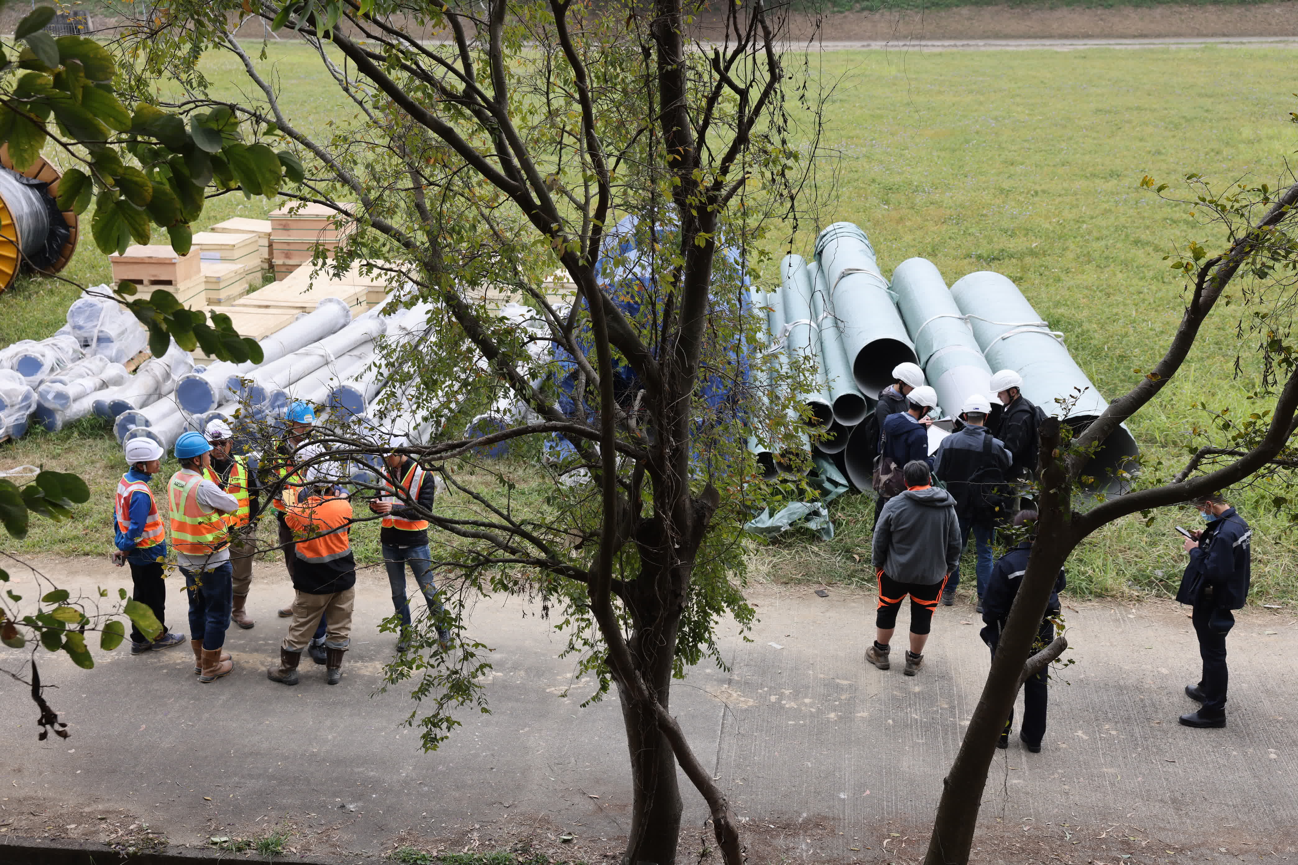 惟事主被送抵醫院後已無呼吸脈搏證實不治,院方遂通知警方跟進,最終警員在離現場300多米外的寶運路21號尋回運載鋼管的貨車及吊臂車,當時貨車拖架放有巨型鋼管,吊臂車則放有懷疑用作吊運的木條和搬運帶。期間勞工處及渠務署人員亦到場向工人了解及拍照。