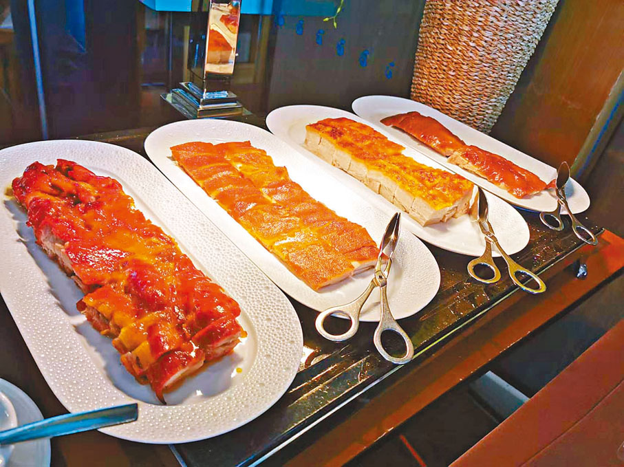 輪流供應的多款烤肉菜式是佳節自助餐的另一亮點推介,即點即切,保留原汁原味。例如,於除夕自助午餐供應的燒威靈頓牛柳、於節日自助午餐及晚餐供應的燒特級牛肉,還有節慶經典聖誕燒火雞,以低溫慢焗來保持肉質嫩滑,與使用了鴨肝醬、香草等釀製的燒香草火雞卷等應節食品由即日起至12月26日期間供應。節日自助晚餐限定的黑蒜香草焗新西蘭羊排,肉嫩美味。其他特色美饌亦於推廣期間大放異彩,包括於12月24至25日及31日自助晚餐供應的清甜滋潤原盅鮑魚花膠螺頭湯及即場以高溫燒製以鎖緊肉汁,以及香氣撲鼻的鐵板煎龍蝦。