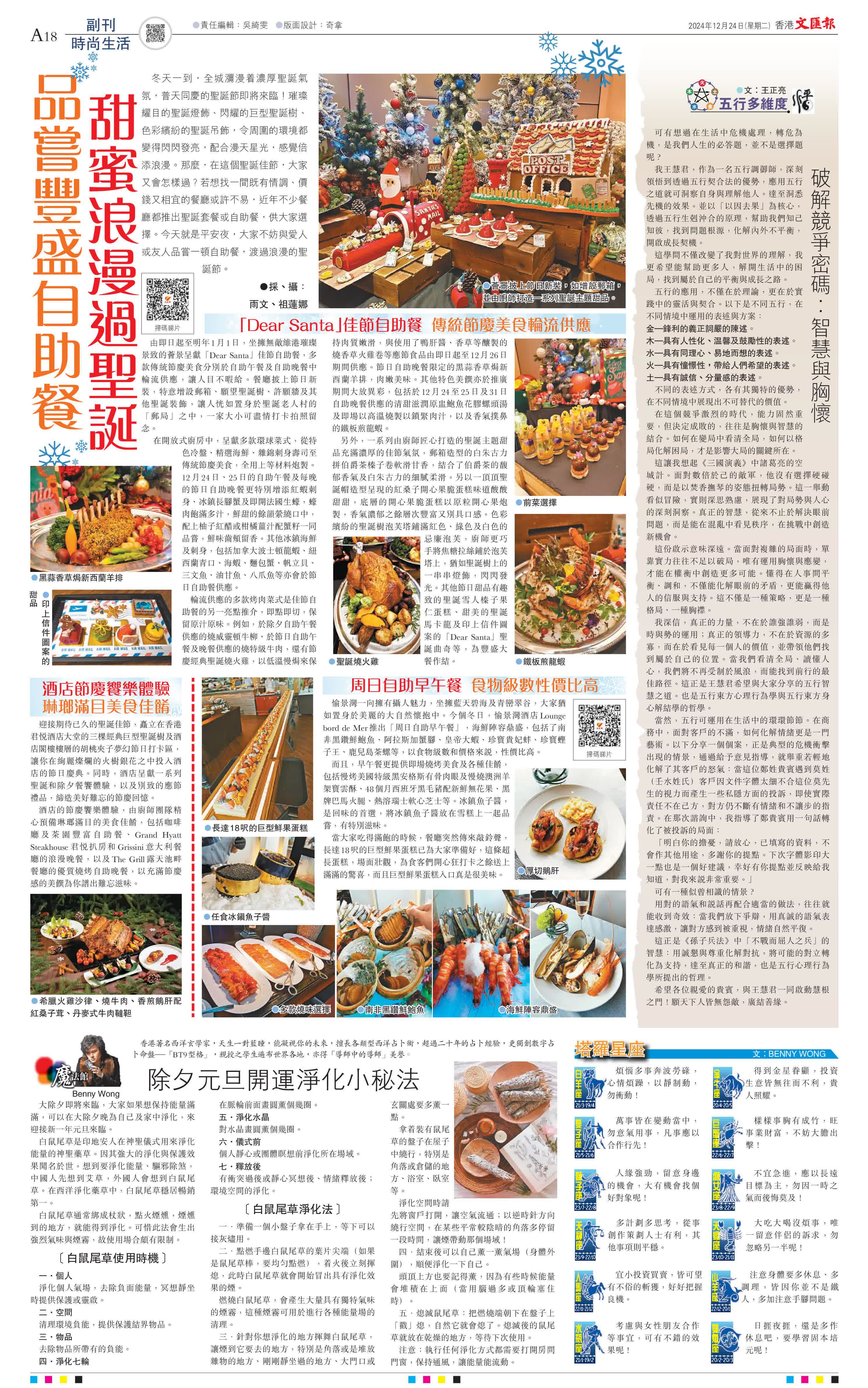 (採、攝︰雨文、祖蓮娜)冬天一到,全城瀰漫着濃厚聖誕氣氛,普天同慶的聖誕節即將來臨!璀璨耀目的聖誕燈飾、閃耀的巨型聖誕樹、色彩繽紛的聖誕吊飾,令周圍的環境都變得閃閃發亮,配合漫天星光,感覺倍添浪漫。那麼,在這個聖誕佳節,大家又會怎樣過﹖若想找一間既有情調、價錢又相宜的餐廳或許不易,近年不少餐廳都推出聖誕套餐或自助餐,供大家選擇。今天就是平安夜,大家不妨與愛人或友人品嘗一頓自助餐,渡過浪漫的聖誕節。
