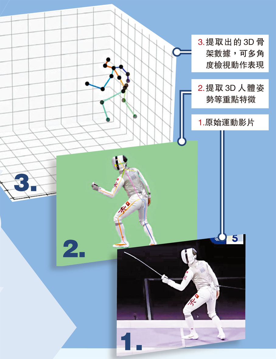 「前人的研究大致可歸納為兩類,其中一類通常是從影片提取2D姿勢」,但梁永豪指,2D骨架缺乏深度訊息,在不同鏡頭角度的畫面下,即使運動員做相同動作,提取出來的2D姿勢特徵都會有些微差別,「人的動作始終都是3D的,2D難免有機會損失一些資訊。」因此其團隊首次使用3D骨架數據作為特徵,「好處是可以從多角度檢視動作表現,有更完整的空間訊息」,亦可減少對相機視角的依賴。