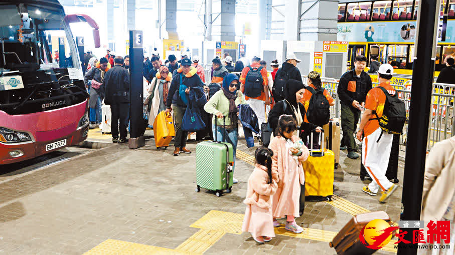 (記者 洪澤楷)兩天聖誕假期昨日結束,大批外遊港人從多個不同口岸回港。香港文匯報記者於下午1時許到香園圍口岸直擊,不少入境人士選擇乘巴士前往市區,部分候車區已排約起百米長龍。多名市民均表示,通關過程大致順暢,並不需排隊。入境處表示,昨日截至晚上9時,各口岸合共有逾94.6萬人次出入境香港,包括近52.2萬人次入境,單計香港居民有逾41.7萬人次入境。各口岸中,以羅湖最繁忙,分別有逾10.1萬人次入境及逾7.7萬人次出境。