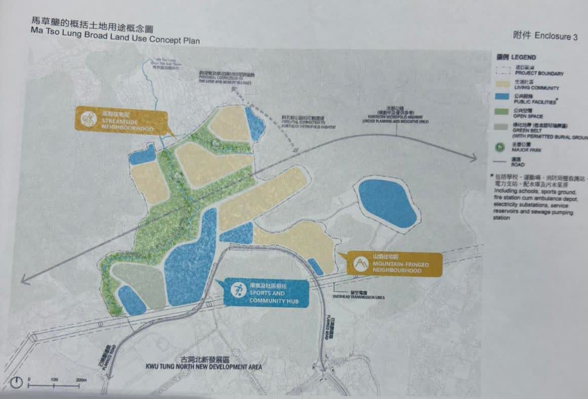 至於馬草壟項目,範圍約 為55 公頃,位於古洞北新發展區市中心以北,定位則是為將來河套區的創科企業提供便捷的社區服務及生活支援。