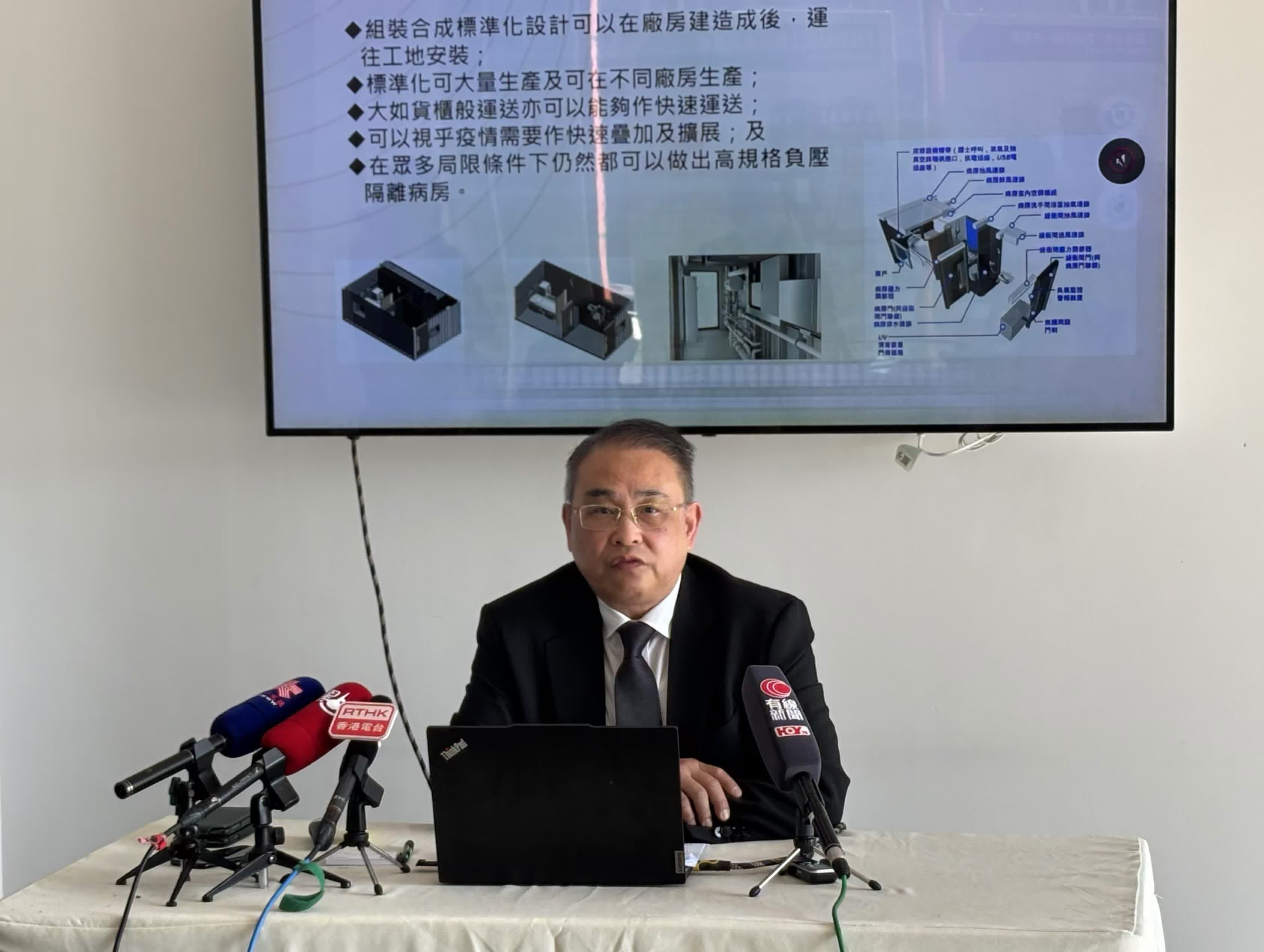 該項目採用先進的「組裝合成」(MiC)建造技術,以貨櫃為單元,每個病房成本約200萬港元,建造周期僅需約一個月,工期可以縮短30%-50%。MiC技術允許近八成的工序在工廠預製完成,再運至現場快速組裝和調試,顯著縮短了建造時間,並確保了工程質量。經嚴格的醫療測試和演習驗證,這些病房能提供高效的負壓隔離環境,有效阻斷高傳染性病原體的傳播。項目採用先進的MiC建造技術配以「機電裝備合成法」(MiMEP)的兩種現代建築方法相輔相成,共同提高建築效率、質量和可持續性。而隔離病房設計的特點是不需外置大量風喉等的中央空調系統支援,以MiMEP內藏的通風空調自給自足形成所需的空氣流向設計,得以有效控制感染。