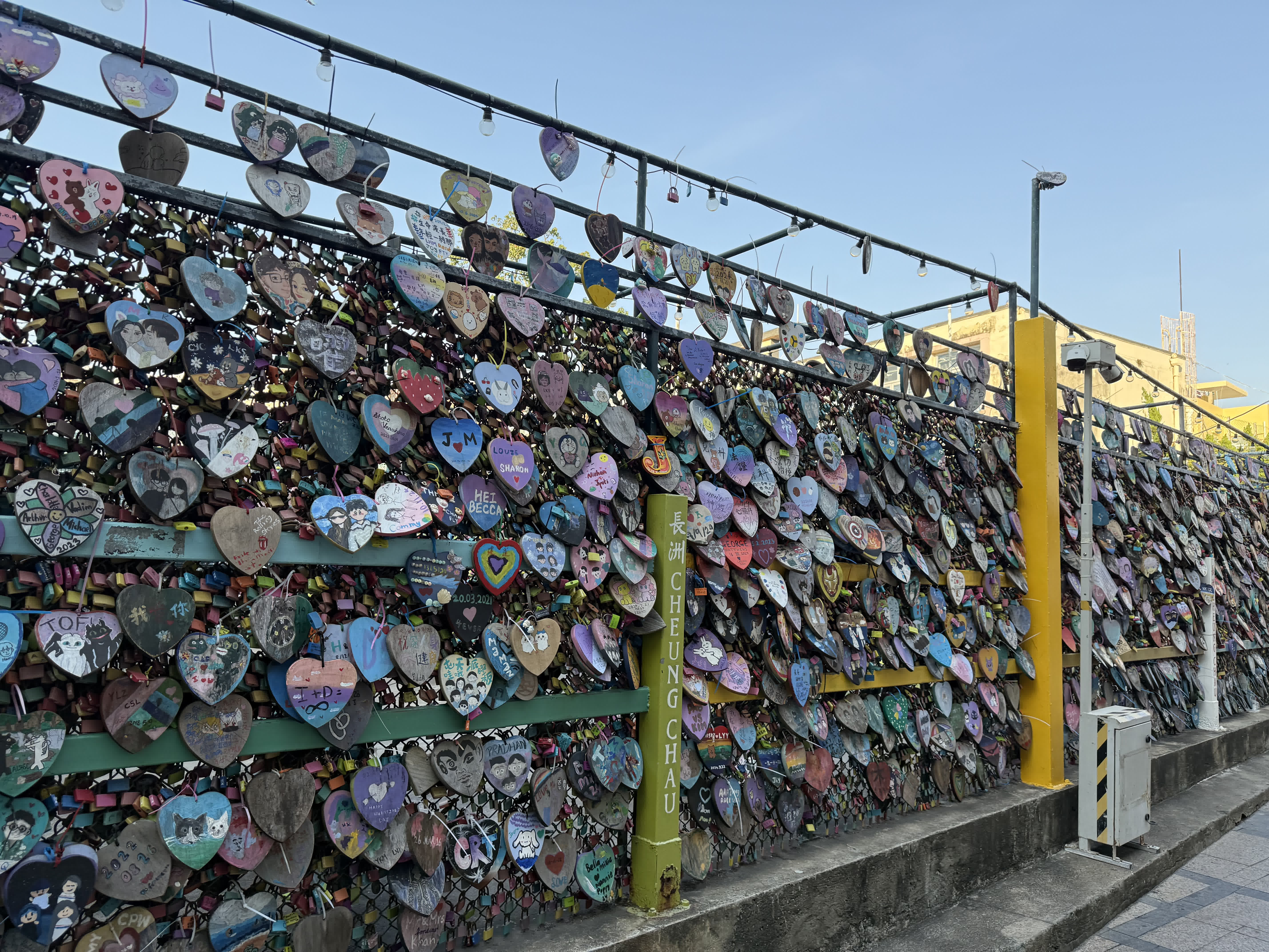 愛情鎖牆是長洲近年來迅速竄紅的浪漫景點。無數情侶將刻有姓名與愛意的鎖懸掛在牆上,以象徵永恒的愛情。這面鎖牆色彩斑斕,從金屬鎖的光澤到背景的碧海藍天,無一不散發着甜蜜氣息。