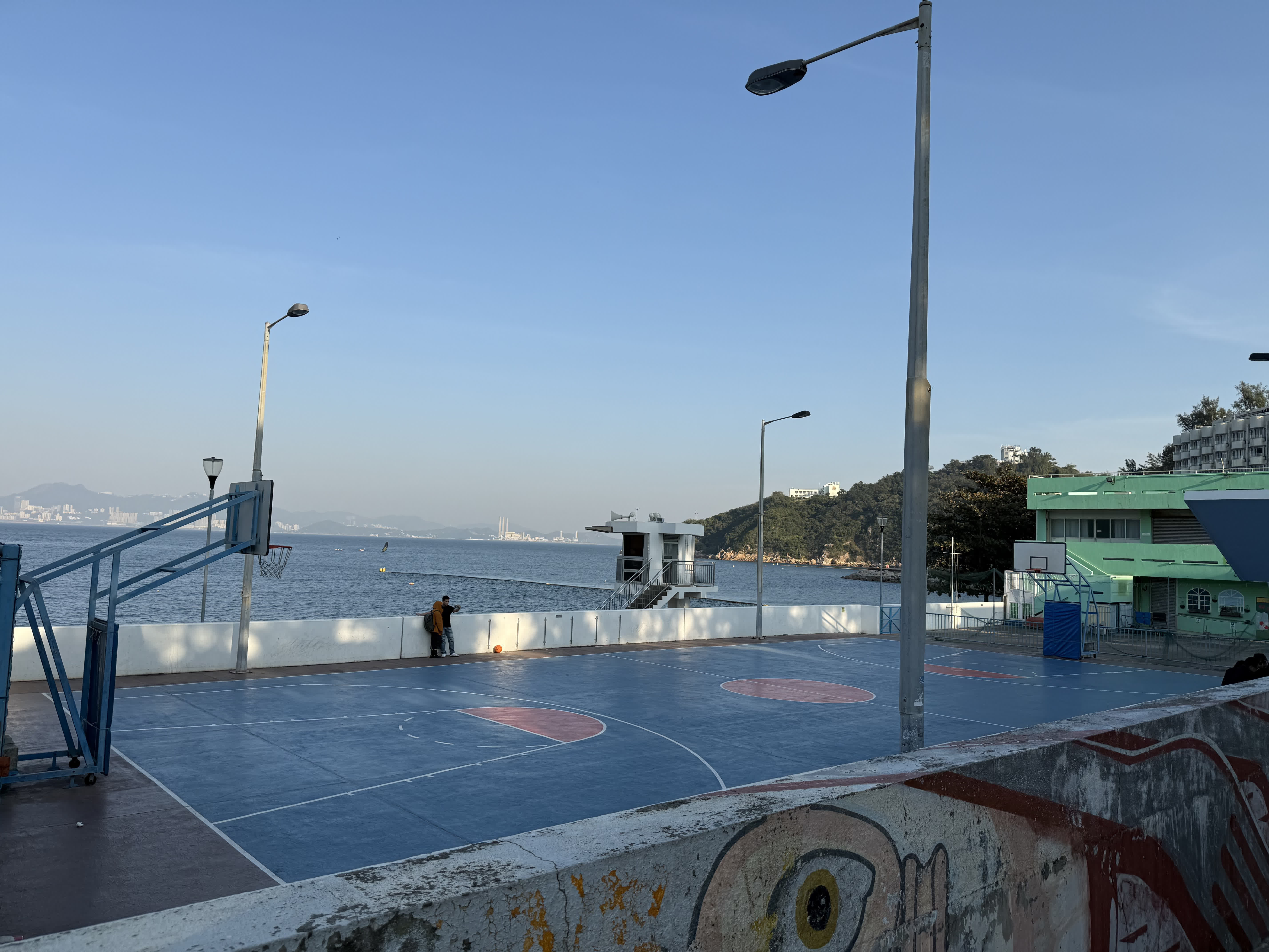 與泳灘入口相鄰的是一個顏值爆錶的藍色籃球場,球場以一抹鮮明的藍色鋪陳,與背景的蔚藍海洋交相呼應,猶如一幅動態的風景畫。這裏不僅是籃球愛好者的活動場地,更吸引了許多網紅與遊客專程來打卡拍照,捕捉專屬於長洲的青春活力。