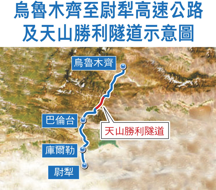 天山是阻隔新疆南北的屏障。尤其是天山中部區域,冬季險峻難行,繞行則耗時漫長。天山勝利隧道橫穿天山中部,全長22.13公里,設計時速100公里,為分離式雙向四車道。它是G0711線烏魯木齊至尉犁高速公路(烏尉高速)的「咽喉」工程,自2020年4月開工建設。隨着天山勝利隧道的貫通,烏尉高速公路有望明年建成,成為南北疆最便捷的公路大通道。屆時,烏魯木齊至庫爾勒駕車時長將從7小時縮至3小時。