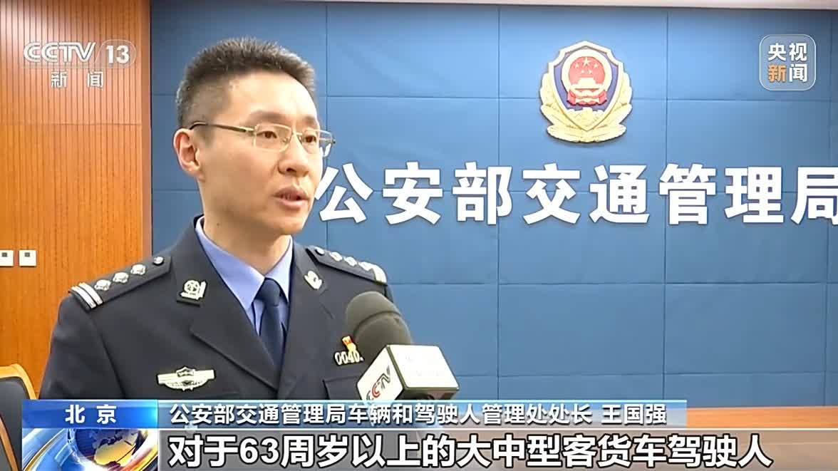公安部交通管理局車輛和駕駛人管理處處長王國強表示,對於63周歲以上的大中型客貨車駕駛人,如果需要繼續駕駛大中型客貨車的時候,經過體檢合格,並且經過反應力、記憶力和判斷力測試以後,可以向公安機關交管部門來申請延長駕駛資格期限,延長的時間是不超過3年。