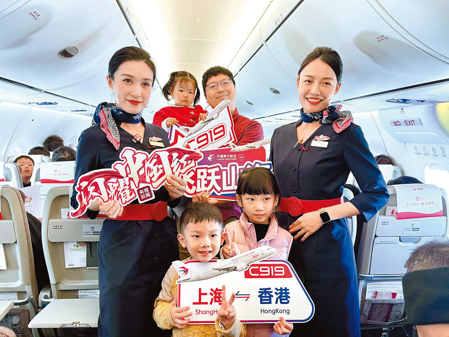 首次執飛滬港定期商業航班 兩地乘客為國產大飛機自豪