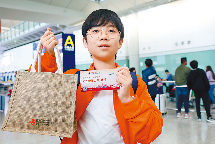 市民呂先生到上海出差,今次碰巧搭乘C919客機回港。他向香港文匯報表示,對參與首航感到興奮,並為國產大客機取得如此成就感自豪。