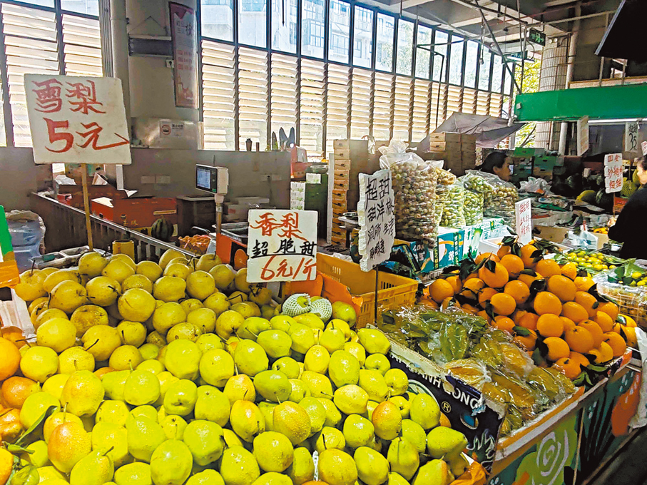 胡女士每到周一上午把女兒送去上學後,便會到福田農批市場買足一家五口幾天用的食材,一個月下來可以省幾千港元。「農批市場真的好大,每次最先逛的是二樓的水果區,一條街長到看不見盡頭,秋月梨5元一斤、冰糖橙5元一斤;生菜3.5元一斤,連州遲菜心7元一斤,這些菜都非常新鮮。」買好差不多一周的量後,胡女士會到熟食檔買當天的晚餐,「這裏的脆皮燒肉38元一斤,比口岸的便宜很多,清遠雞原價88元一隻,特價70元一隻,看着都很不錯」。