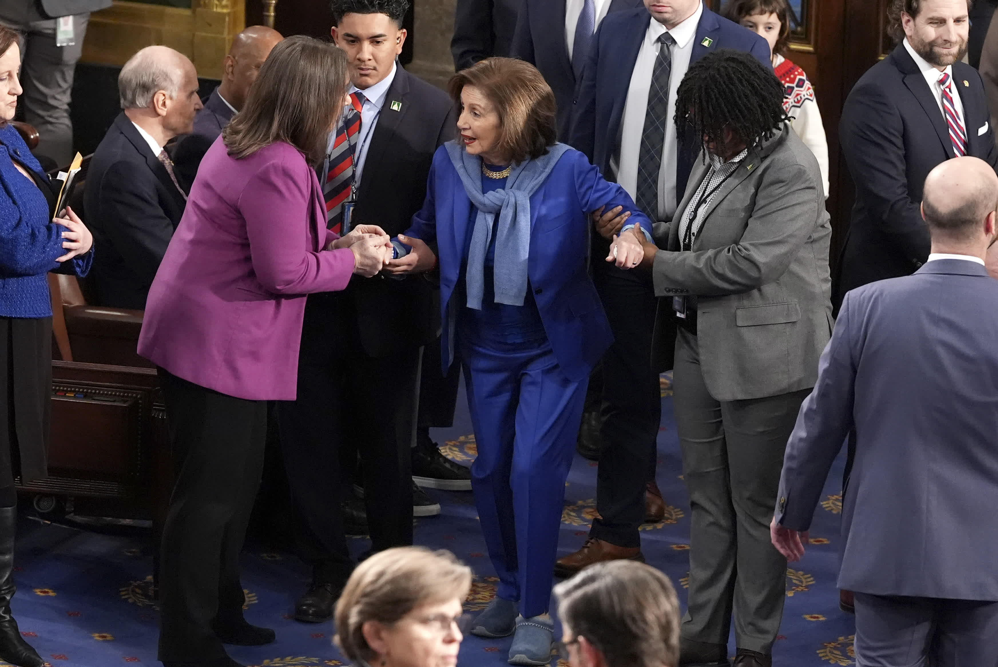 當地時間2024年12月13日,佩洛西在盧森堡出席一次官方活動時受傷,隨後進行髖關節置換手術,並「恢復良好」。