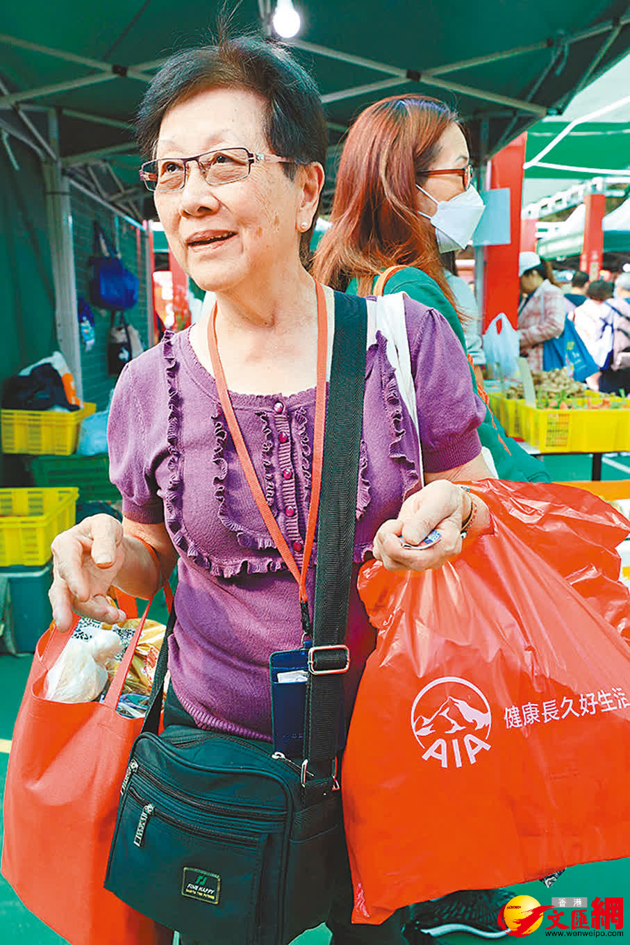 李太太也迅速買滿一整個手推車。她表示,入場一小時左右就買了不少漁農產品,包括油麥菜、紫菜、芋頭、鹹魚仔等,花費百逾元,「啱就會買,新鮮就會買。」