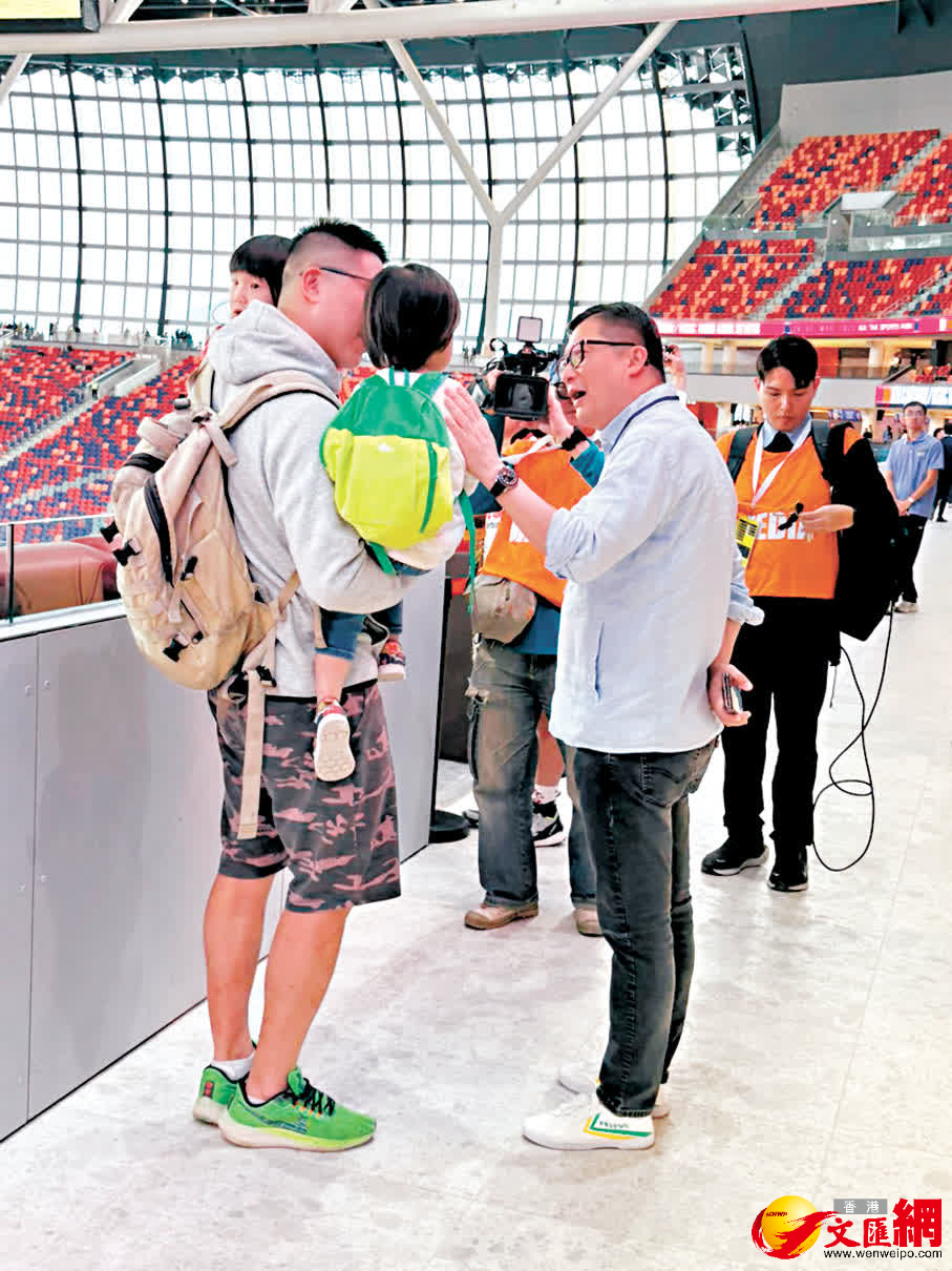 陳氏家庭身穿麥當勞服飾,從九龍灣一同步行到啟德觀賽。陳先生表示,主場館十分震撼,設施十分先進,「今次香港終於也有能合上天幕的體育場了!」他續說,主辦方透過音樂和屏幕互動,將場內整體氛圍烘托得十分到位。