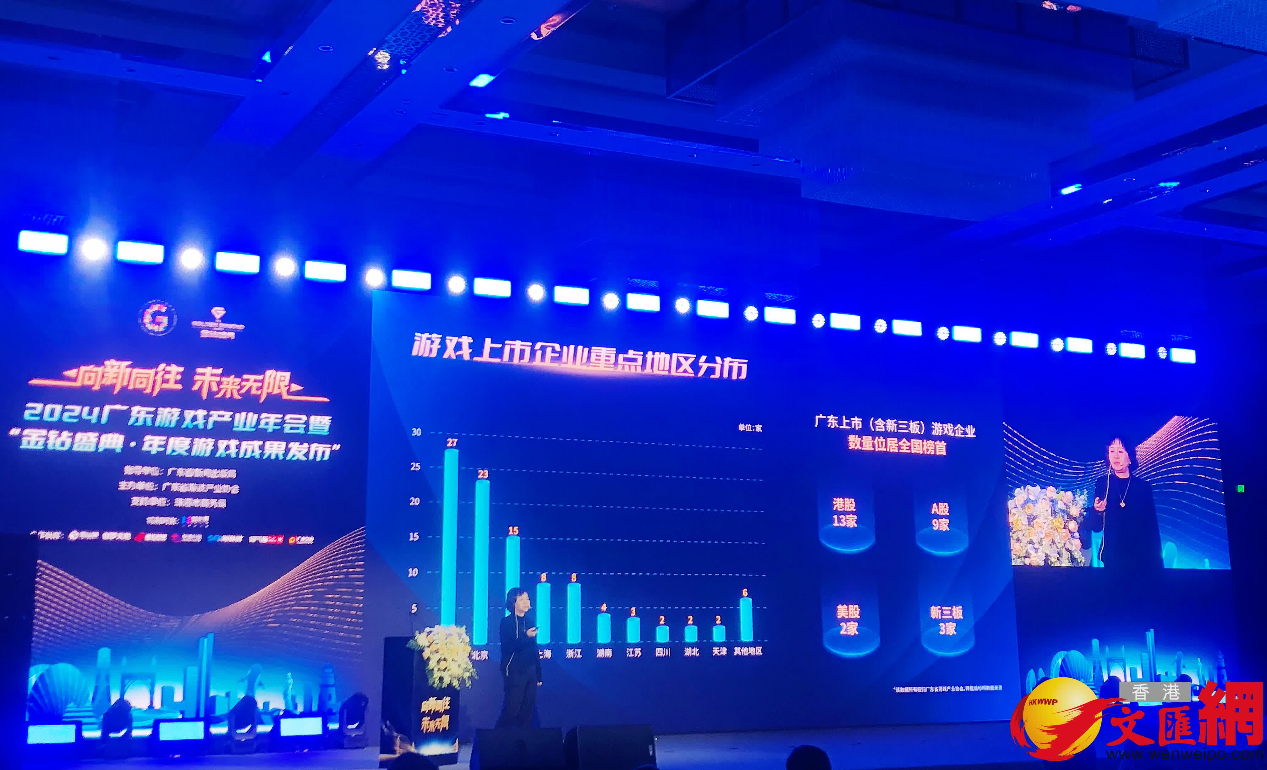 (香港文匯網記者 方俊明)廣東省遊戲產業協會主辦的2024廣東遊戲產業年會暨「金鑽盛典·年度遊戲成果發布」儀式6日至7日在珠海舉行。期間,廣東省遊戲產業協會執行會長魯曉昆發布《2024廣東遊戲產業發展報告》(下稱《報告》)。2024年廣東遊戲出海營收規模達到423.6億元(人民幣,下同),同比增長近10%,實現了近幾年的快速增長。而廣東上市遊戲企業達27家,位居全國首位;其中赴香港上市佔近一半。