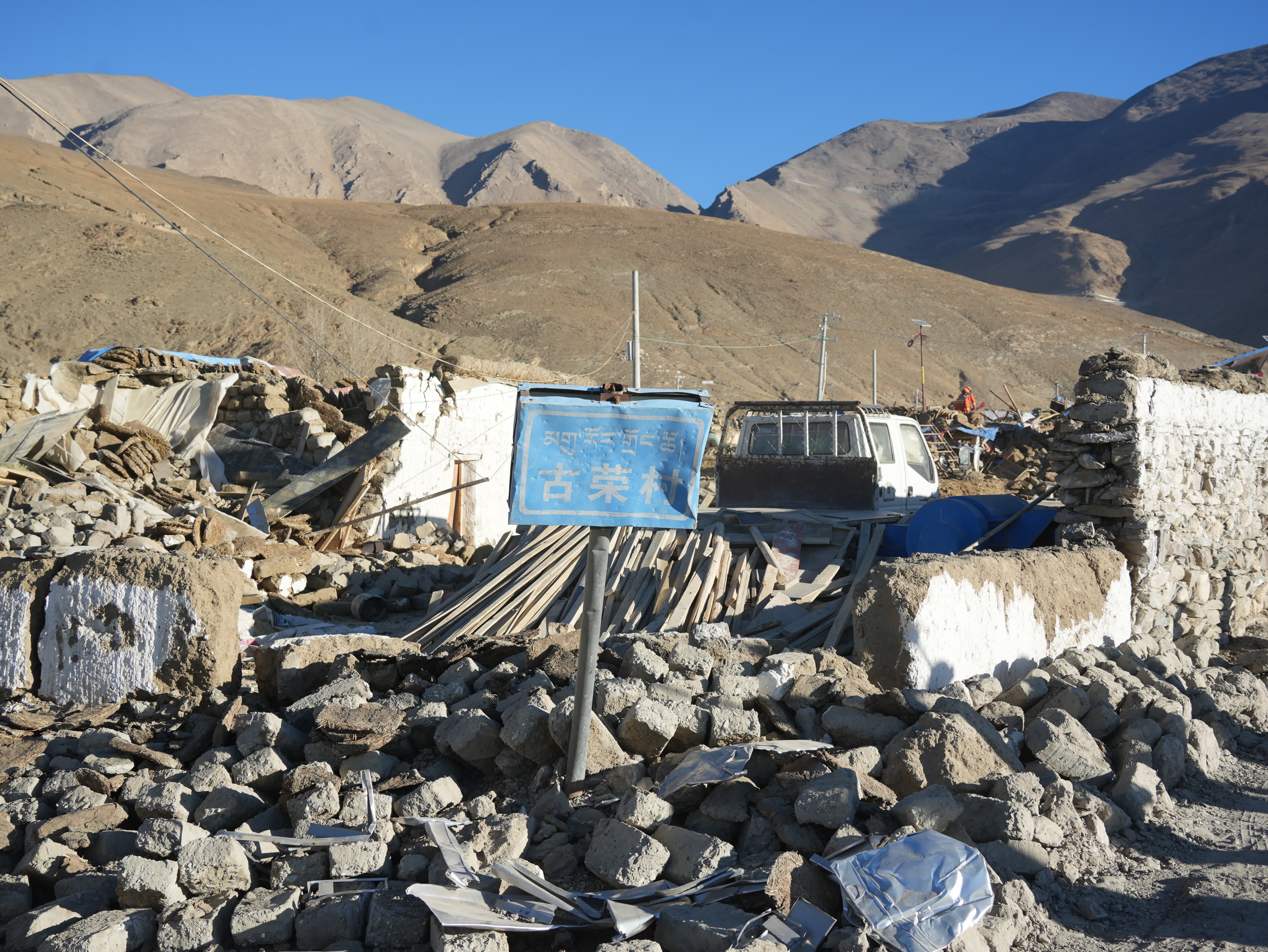 8日上午9時,西藏藍天救援隊集合前往長所鄉古榮村,該村房屋倒塌嚴重,全員進入搜救任務。據新華社消息,長所鄉古榮村是地震受災最嚴重的村莊之一,全村222人中,22人遇難。