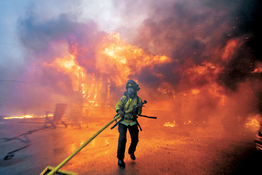 香港文匯報訊 美國南加州地帶洛杉磯附近遭遇10多年來最嚴重強風吹襲,乾燥風勢引發大規模山火,截至周二(1月7日)晚間,山火已燒毀超過1,200公頃土地,近30萬戶斷電,加州州長及洛杉磯市長周二宣布進入緊急狀態,超過3萬人緊急疏散。