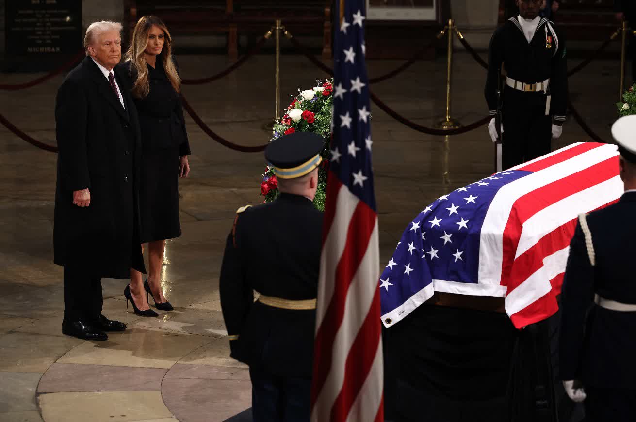 卡特的靈柩於周二運抵華盛頓,安放在國會山莊的圓形大廳內,接受公眾瞻仰。特朗普周四偕同妻子梅拉尼婭前往悼念卡特,特朗普與梅拉尼婭沉默不語,在覆蓋國旗的靈柩前站立了數分鐘,然後特朗普深吸了一口氣,牽起梅拉尼婭的手轉身離開。