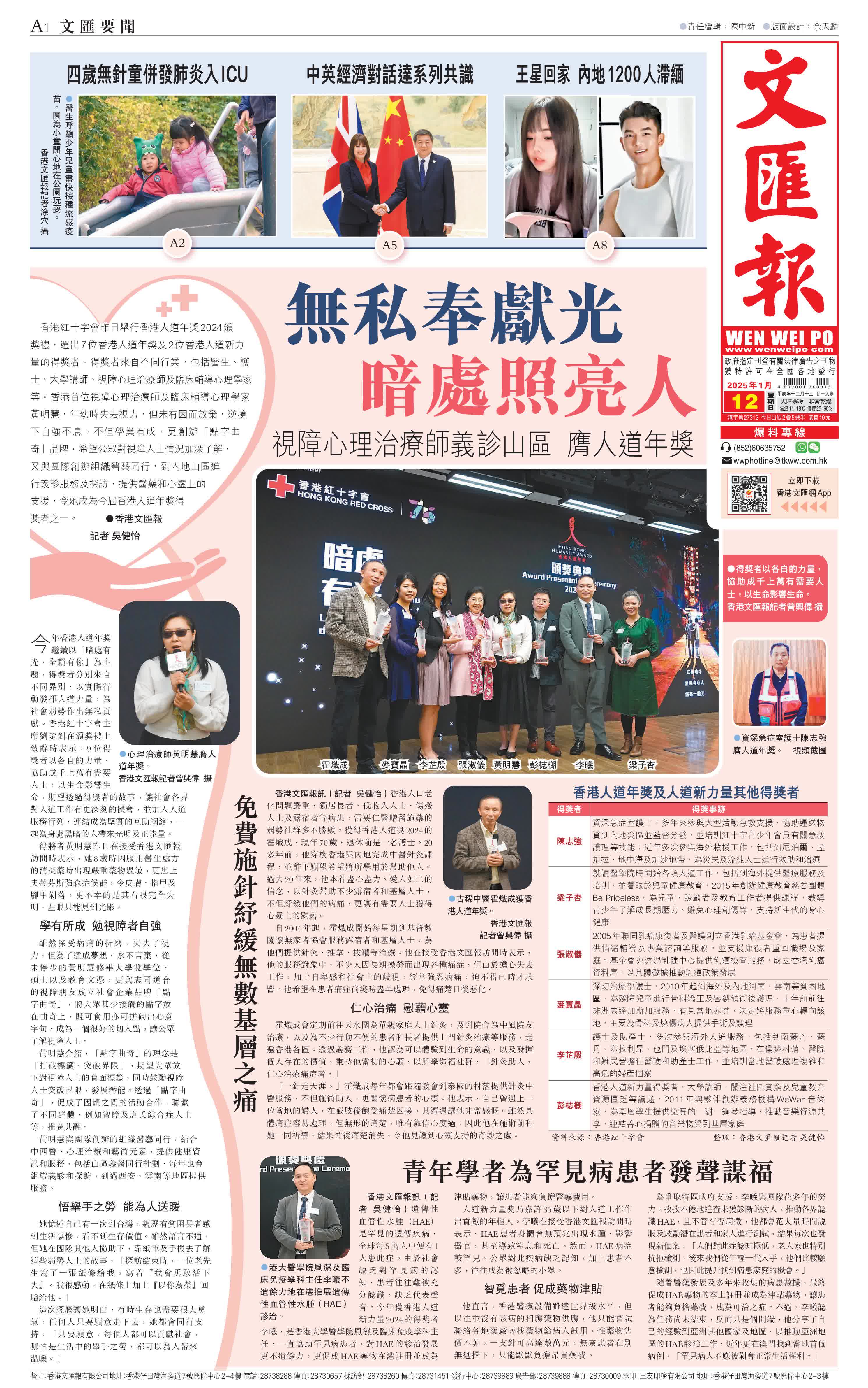 (記者 吳健怡)遺傳性血管性水腫(HAE)是罕見的遺傳疾病,全球每5萬人中便有1人患此症。由於社會缺乏對罕見病的認知,患者往往難被充分認識,缺乏代表聲音。今年獲香港人道新力量2024的得獎者李曦,是香港大學醫學院風濕及臨床免疫學科主任,一直協助罕見病患者,對HAE的診治發展更不遺餘力,更促成HAE藥物在港註冊並成為津貼藥物,讓患者能夠負擔醫藥費用。